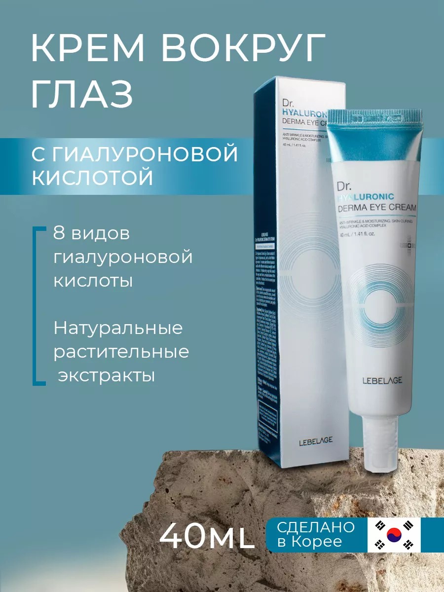Крем для век для лица антивозрастной 40 мл. Lebelage ОРИГИНАЛ. Корейский крем для кожи вокруг глаз (век) Lebelage Dr.Hyaluronic Derma Eye Cream с Гиалуроновой кислотой, помогает восстановить эластичность, уменьшает отечность, темные круги и тусклость. Мгновенно освежите и оживите глаза. Этот мощный крем для глаз сочетает в себе гиалуроновую кислоту, повышающую способность кожи удерживать влагу, ацетилгексапептид-1 и гидролизованный коллаген, чтобы уменьшить появление темных кругов, отечности и опухших глаз и заметно улучшить текстуру кожи для свежего, обновленного внешнего вида.