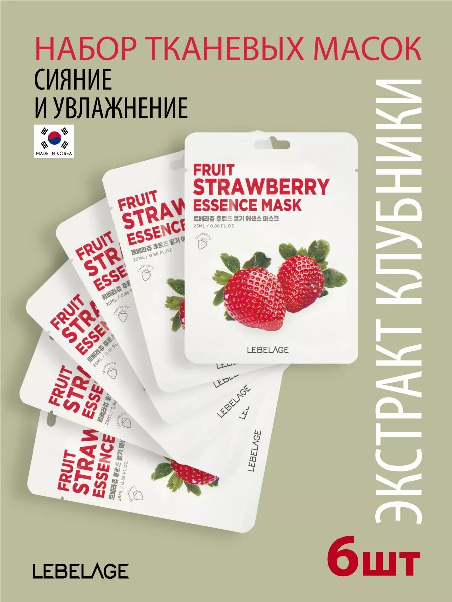 Набор масок для лица сочетает в себе антиоксидантную защиту, питание и увлажнение. LEBELAGE Fruit Strawberry Essence Mask, 25ml. Эти тканевые маски для лица обеспечат вашей коже сияние и здоровье благодаря экстракту клубники. Он регулирует работу сальных желез, способствует уменьшению пор, регенерирует, являясь отличным антиоксидантом. Маска для лица имеет противовоспалительное и антибактериальное действие, противостоит старению кожи и нейтрализует негативное воздействие солнечных лучей, увлажняя и смягчая. Этот косметический набор станет идеальным средством ухода за кожей. В составе каждой маски на лицо присутствует аллантоин, известный своими успокаивающими свойствами. Тканевая основа обеспечивает равномерное распределение активных компонентов. Маска для лица тканевая из набора способствует улучшению общего состояния кожи. Маски для лица тканевые из этого подарочного набора подойдут как дополнение к вашему ежедневному уходу за кожей или в качестве самостоятельной процедуры. Идеальный подарок женщине: маме, подруге и девушке на день рождения, новый год, 8 марта и день Святого Валентина. Рекомендуется к использованию в комплексе с серией уходовой корейской косметики для ухода за лицом, телом и волосами Лебеледж.