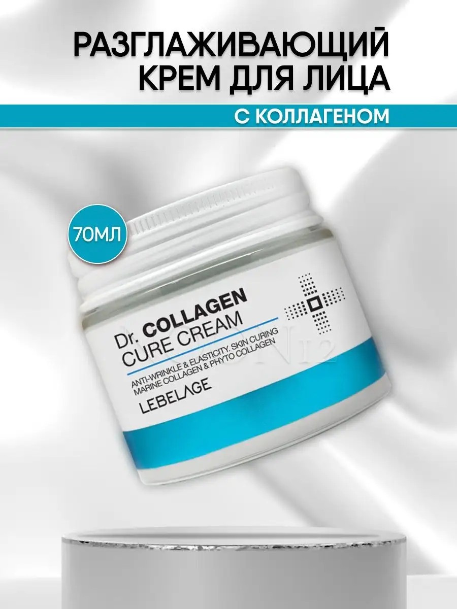LEBELAGE Dr. COLLAGEN CURE CREAM Крем для лица антивозрастной корея содержит целый комплекс омолаживающих ингредиентов: гидролизованный морской коллаген, растительный коллаген, аденозин, витамин Е, аллантоин. Средство борется с первыми признаками возрастных изменений, запускает синтез коллагена, разглаживает морщины, интенсивно увлажняет и смягчает кожу. ПРИМЕНЕНИЕ: нанести на чистую тонизированную кожу массажными движениями, дать впитаться