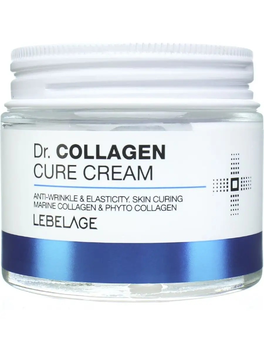 Korean Smoothing Face Cream with Collagen Lebelage Dr. COLLAGEN CURE CREAM Korea 70 ml. Smoothing cream with hydrolyzed collagen evens out skin texture, maintains its elasticity, and fights signs of premature aging. It stimulates collagen synthesis, helps restore volume, reduces wrinkles, intensively moisturizes and softens the skin. The cream is suitable for all skin types. Marine collagen strengthens and softens the skin, increases elasticity. Plant collagen prevents the appearance of wrinkles, has an antioxidant effect, and restores skin density. Directions for use: Morning and/or evening, apply the required amount of cream after cleansing the skin, toner, and serum.