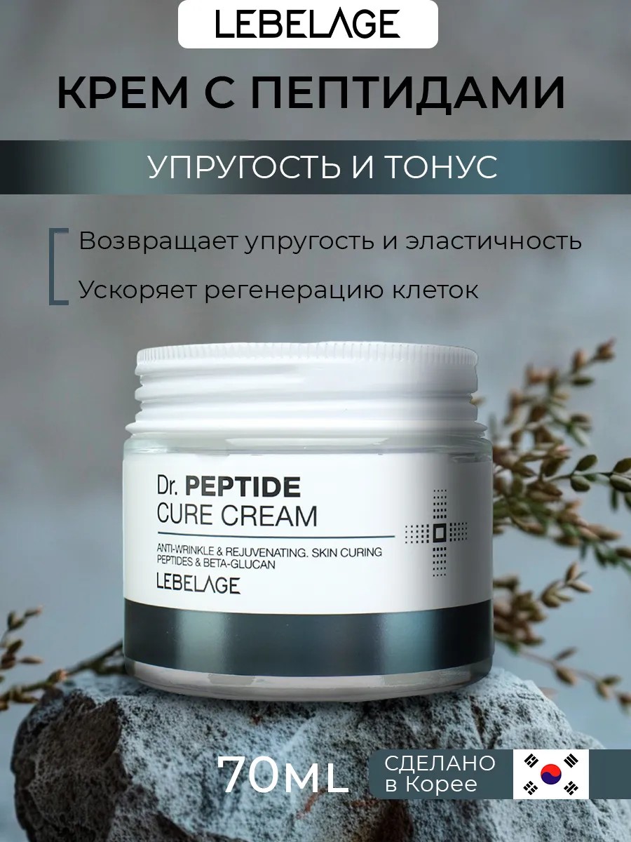 Корейский крем для лица антивозрастной омолаживающий с Пептидами Lebelage Dr. Peptide Cure Cream, содержит комплекс пептидов с безупречной физиологической активностью. Молекулы пептидов проникают в глубокие слои, способствуют замедлению старения клеток, разглаживают морщины, осветляют пигментацию, укрепляют внутриклеточный матрикс и делают кожу более эластичной. Аллантоин, аденозин и бета-глюкан защищают кожу от потери влаги, ускоряют заживление и регенерацию. Крем не утяжеляет, прекрасно распределяется и мгновенно впитывается, оставляя кожу идеально гладкой и свежей. Аллантоин ускоряет регенерацию клеток, выравнивает тон кожи, улучшает микроциркуляцию. Комплекс пептидов