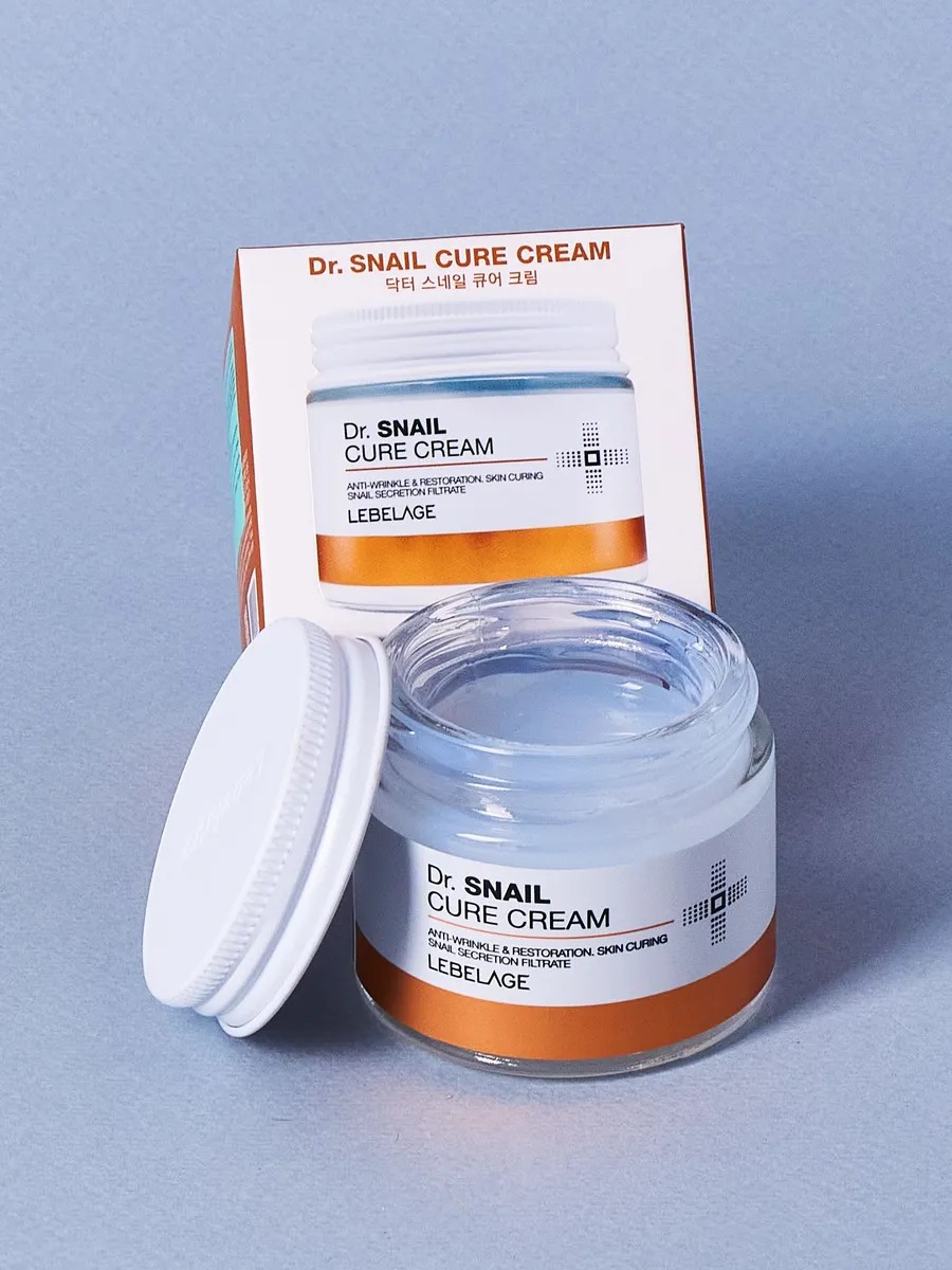 Крем Lebelage Dr. Snail Cure Cream стимулирует выработку коллагена и эластина, что способствует разглаживанию морщин и повышению упругости кожи.