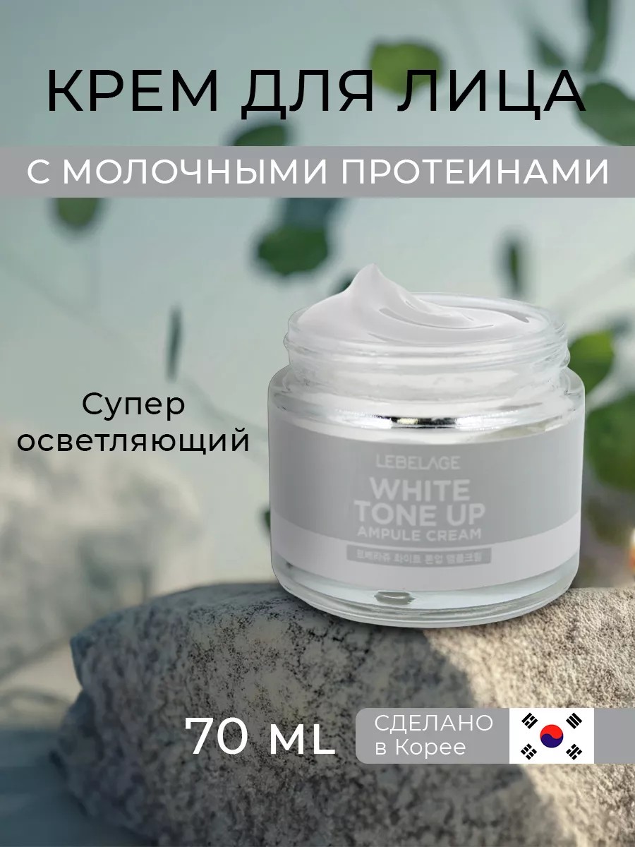 Korean Moisturizing Face Cream with Milk Proteins, Restorative, 70 ml. Milk proteins possess powerful regenerating, moisturizing, anti-inflammatory, softening, and anti-allergenic properties. These substances also nourish the skin. This property is due to the high content of amino acids. By affecting the skin, milk proteins not only renew the epidermis but also stimulate the growth of new cells. Moreover, they are known to activate collagen synthesis. This Korean cream-serum for the face, neck, and décolleté provides an intensely nourishing effect, moisturizes and softens the skin, eliminates dryness and flaking, improves firmness and elasticity, and helps smooth out wrinkles. This Korean face cream can be used as a day and night cream; it combines a high concentration of active ingredients (like serums) with the ability to seal these ingredients in, as well as provide skin protection from external influences (like creams). For dry skin, including sensitive and problematic skin. Recommended for use in combination with the Lebelage line of Korean facial and body care products. The cream contains active ingredients that make skin firm and youthful, perfectly moisturize, and nourish it with vitamins. Galactomyces helps regulate natural metabolic processes in the skin, including restoring the hydrolipidic balance and preventing the signs of aging.