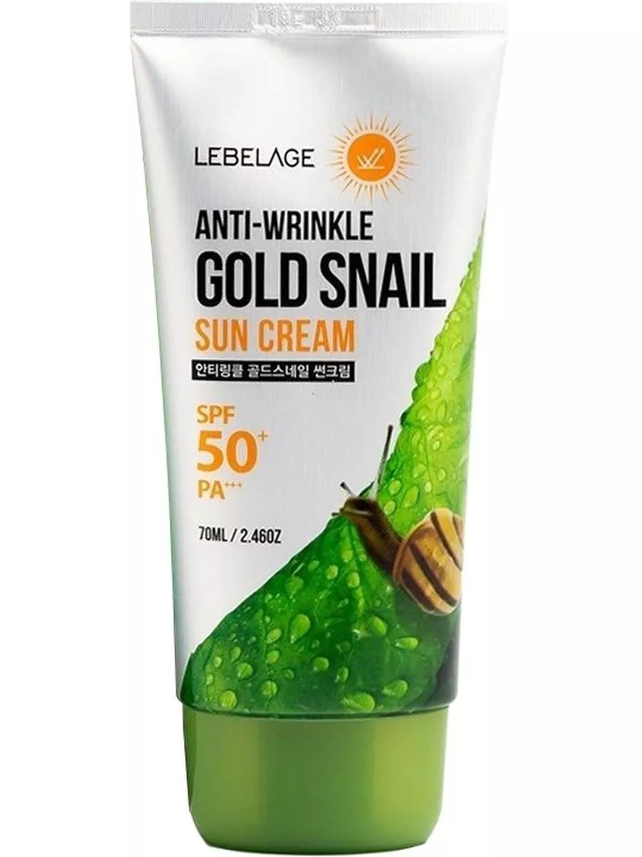 This cream is designed to protect skin from the harmful effects of sunlight and prevent photoaging. Its formula includes snail mucin and centella asiatica extract, which have an anti-aging effect on the skin. In addition, the composition contains mulberry extracts and allantoin, which help normalize cellular metabolism and moisturize the skin. Application: Apply the cream to the face and exposed areas of the body. Reducing the amount of cream or uneven distribution will significantly reduce the level of protection. Extended exposure to the sun is not recommended, even when using sunscreen. // Lebelage Anti Wrinkle Gold Snail Sun Cream SPF50+ Sunscreen for face and body with snail mucin, 70 ml