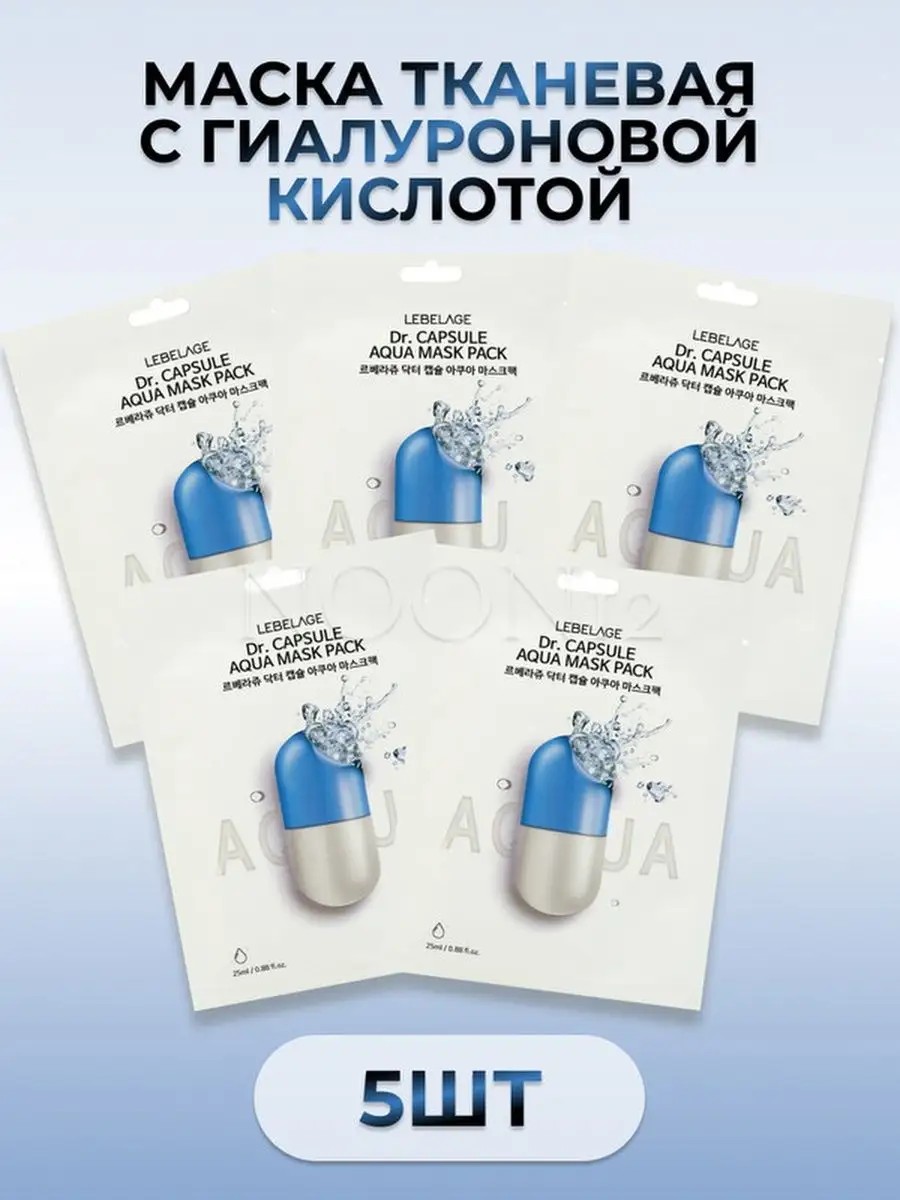 LEVELAGE Dr. CAPSULE AQUAMASK PACK 5 pcs. This moisturizing sheet mask with hyaluronic acid has a pronounced moisturizing effect, refreshes and tones the skin, saturating it with minerals and microelements, which improve skin firmness and elasticity. Contains hyaluronic acid, adenosine, and allantoin. APPLICATION: Apply the mask to cleansed and toned skin for 10-20 minutes, remove, and distribute the remaining essence over the face.