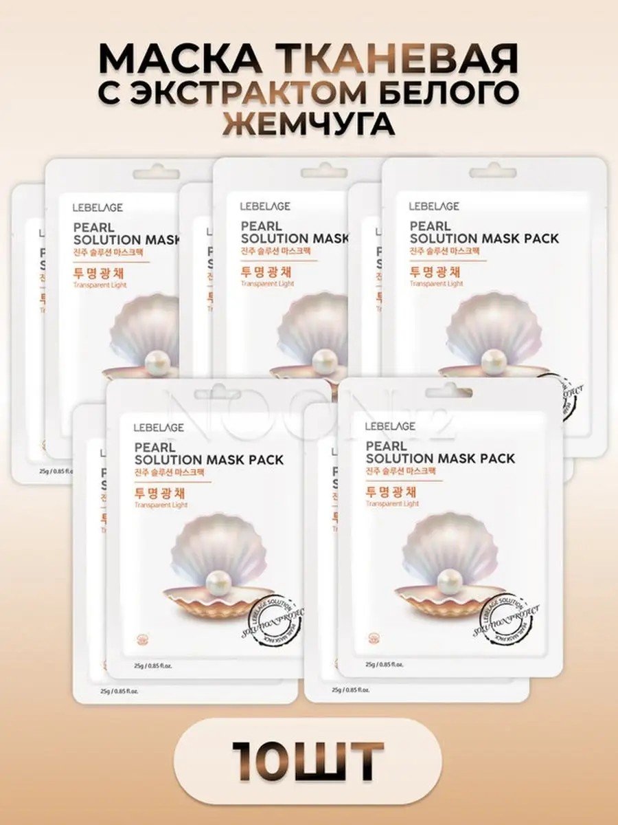 LEBELAGE PEARL SOLUTION MASK 10 шт. Увлажняющая тканевая маска для лица с жемчугом является эффективным средством для быстрого восстановления кожи лица. Маска для лица матирующая осветляющая устраняет излишки кожного жира и неприятный блеск, осветляет кожу, делает менее выраженной пигментацию и придает коже естественное здоровое сияние. Жемчужная пыль предотвращает гиперпигментацию, оказывает абсорбирующее действие, удаляет с поверхности кожи и из пор излишки себума. ПРИМЕНЕНИЕ: на очищенную кожу лица нанести маску, оставить на 10-20 минут, оставшуюся эссенцию распределить по коже лица.