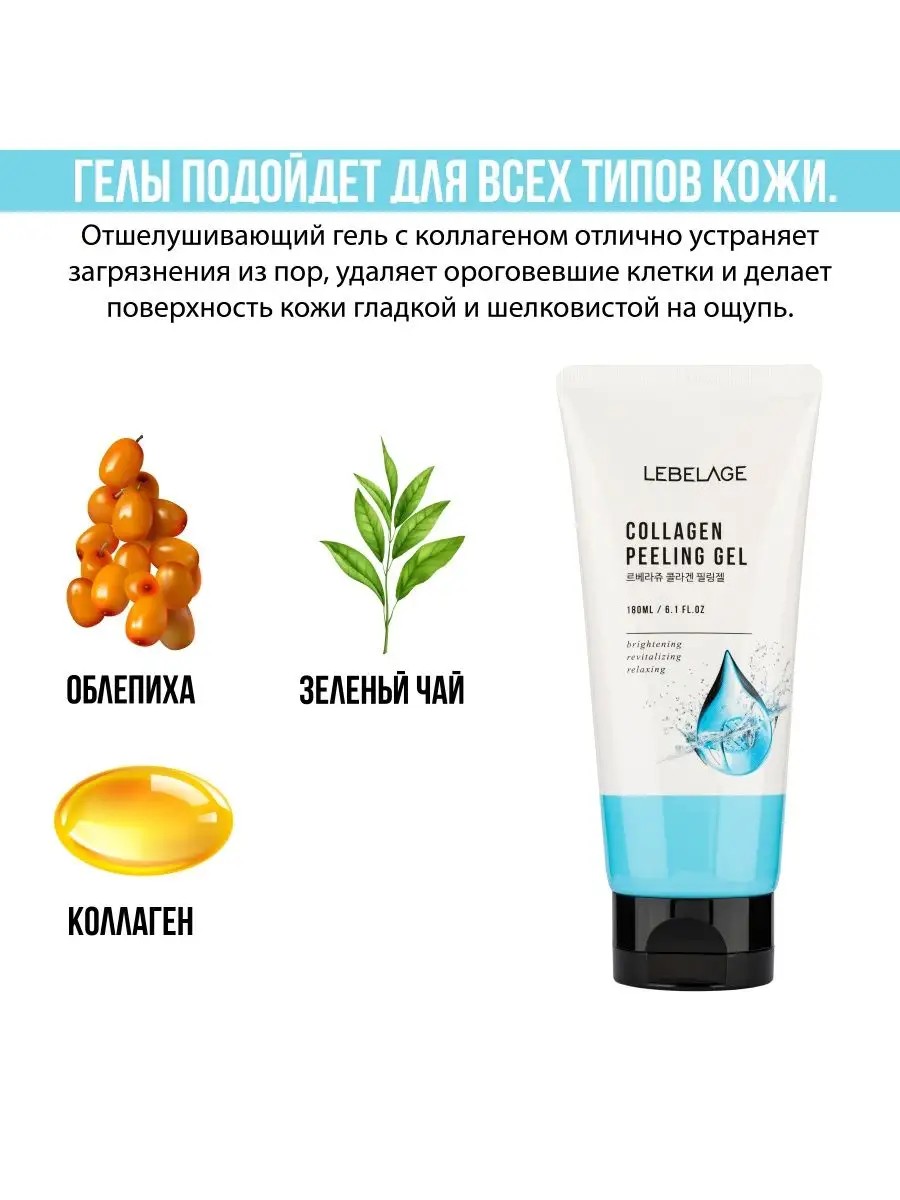 Отшелушивающий гель для кожи лица и шеи Корея с коллагеном отлично устраняет загрязнения из пор, удаляет ороговевшие клетки и делает поверхность кожи гладкой и шелковистой на ощупь. Гидролизованный коллаген способствует восстановлению упругости и эластичности, увлажняет и улучшает способность кожи удерживать влагу, разглаживает мимические морщинки. Измельчённая скорлупа грецкого ореха помогает очистить кожу от загрязнений и черных точек. Масло облепихи и экстракт зеленого чая успокаивают кожу, отлично увлажняют и придают коже упругость. Гель подойдет для всех типов кожи, в том числе и для проблемной. Применение: на очищенную, сухую кожу лица нанесите достаточное количество средства, избегая области глаз и рта. Помассируйте 1-2 минуты, до появления катышков. После этого смойте средство теплой водой. Идеальный подарок женщине, маме, подруге, девушке любимой на день рождения, Новый год, 8 марта, день Святого Валентина. Рекомендуется к использованию в комплексе с серией косметики для ухода за лицом и телом Lebelage.