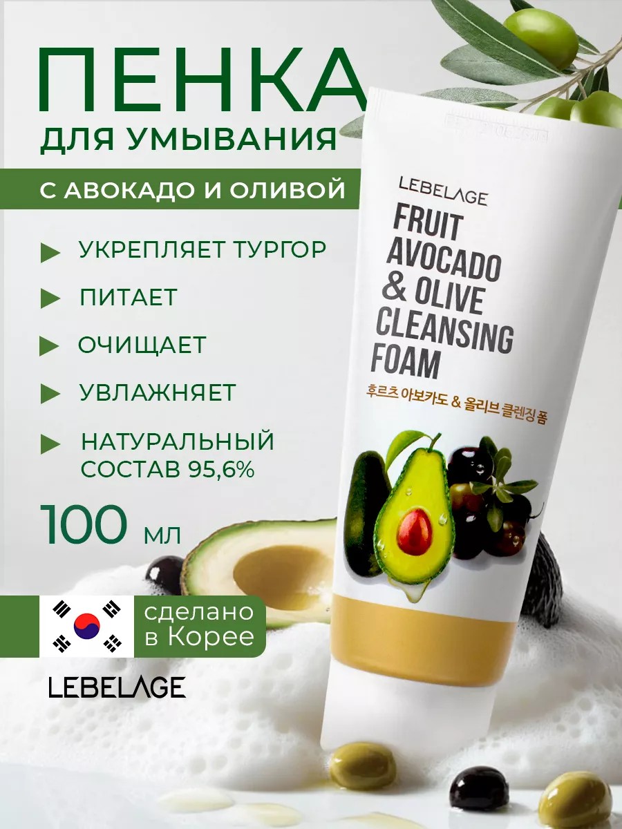 Корейская пенка для умывания Lebelage Cleansing Foam Fruit Avocado&Olive с экстрактом авокадо и оливы эффективно и бережно удаляет излишки себума и ороговевшие клетки, очищает поры. Пенка делает кожу мягкой, гладкой, чистой и комфортной. Особенности пенки для умывания: бережно удаляет загрязнения, очищает поры, не пересушивает кожу, не оставляет неприятного чувства стянутости.