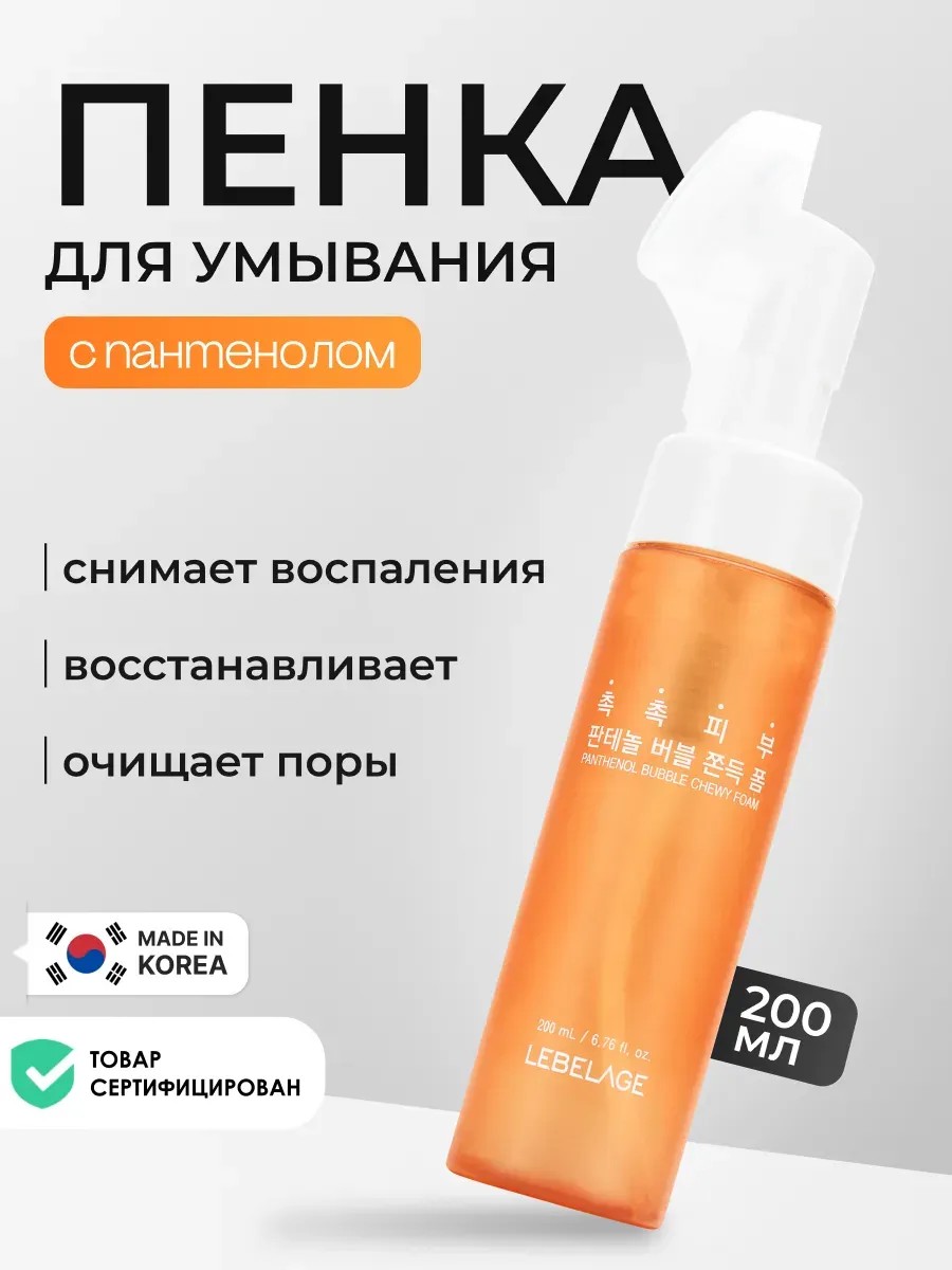 Очищающая пенка для умывания лица с щеточкой Корея с пантенолом 200мл, LEBELAGE Panthenol Bubble Chewy Foam, 200ml — это универсальное средство, которое подарит коже бережный уход. Корейская пенка для умывания обеспечивает мягкое и эффективное очищение кожи. Образуется обильная и воздушная пена, которая проникает глубоко в поры и удаляет загрязнения без нарушения естественного баланса кожи. Пенка с пантенолом успокаивает и увлажняет кожу, способствуя её восстановлению и сохранению текстуры. Эта корейсая косметика подходит для всех типов кожи: сухой, жирной, комбинированной, чувствительной, проблемной и нормальной. Очищающая пенка для лица безопасно очищает даже наиболее чувствительную кожу благодаря своему уникальному составу. Пенка для снятия макияжа также успешно справляется с удалением декоративной косметики, оставляя лицо свежим и чистым. Пенка с пантенолом идеально подходит как умывалка для жирной кожи — она помогает регулировать секрецию кожного сала и предотвращает появление нежелательной жирности. Для обладателей сухого типа кожи этот продукт станет источником дополнительного увлажнения благодаря пантенолу, который делает кожу бархатистой на ощупь. Кроме того, экстракты саликорнии и тростника поддерживают оптимальный уровень увлажнённости кожи и улучшают её состояние. Эти компоненты особенно полезны умывалке для лица пенке от прыщей или других несовершенств, так как экстракты оказывают благотворное влияние на проблемные участки. Корейская косметика славится своим качеством и инновационными решениями в уходе за кожей — очищающая пенка не исключение. Она одновременно очистит поверхность лица без ощущения стянутости после применения. Для максимального удобства использования предусмотрена компактная щеточка, которая способствует более тщательному очищению. Щеточка мягко массирует кожу во время умывания, улучшая микроциркуляцию крови. Это именно та продукция из Кореи, которую следует попробовать всем ценителям качественной ухаживающей косметики.