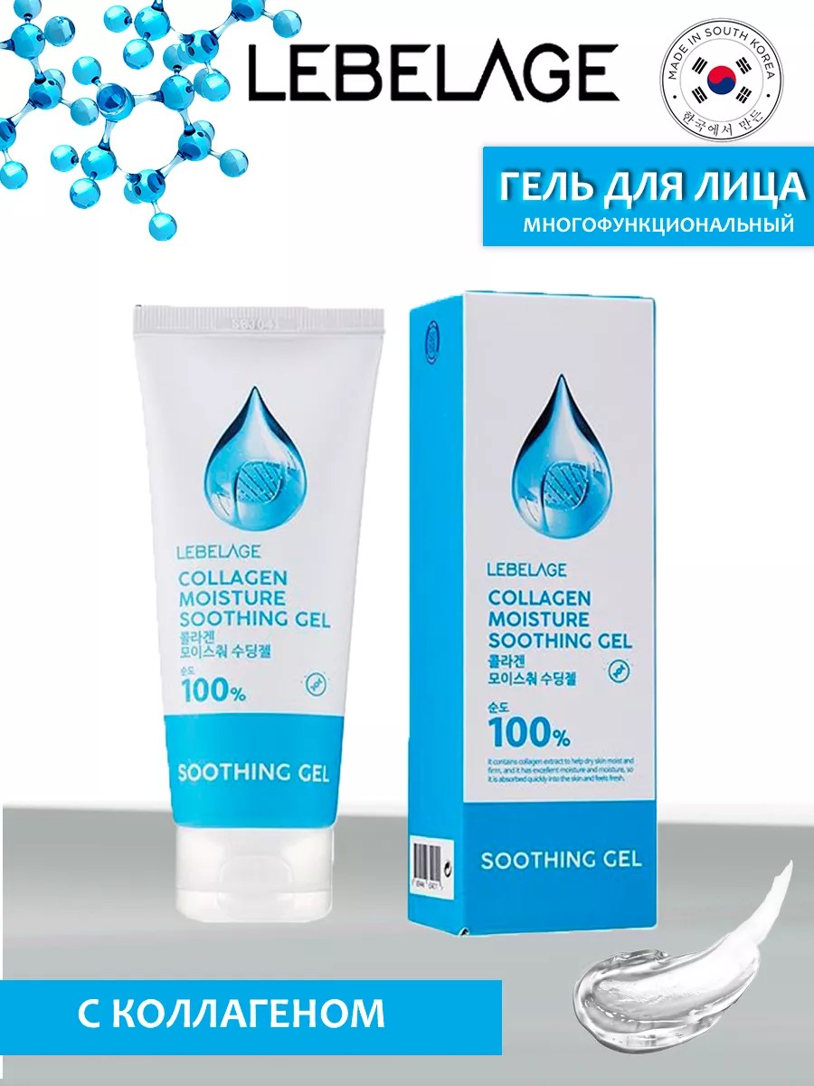 Lebelage Collagen Moisture Purity 100% Soothing Gel – это многофункциональный гель который обеспечит коже бережный уход. Его действующие компоненты проникают в каждую клеточку и работают на клеточном уровне: глубоко питают и увлажняют, разглаживают, стимулируют синтез коллагена, восстанавливают кожу.