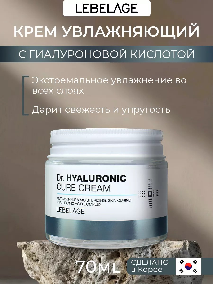 Крем для лица Lebelage ОРИГИНАЛ против морщин увлажняющий антивозрастной с Гиалуроновой кислотой 70мл. Корейский крем для лица антивозрастной увлажняющий с Гиалуроновой кислотой Lebelage Dr. Hyaluronic Cure Cream содержит 8 типов гиалуроновой кислоты с разным молекулярным весом и структурой, благодаря чему обеспечивается мощное увлажнение как снаружи, так и в глубоких слоях. Пантенол и бета-глюкан оказывают противовоспалительный эффект, снимают зуд и покраснения. Аденозин ускоряет синтез коллагена, разглаживает морщины, делает кожу эластичной и подтянутой. Крем не утяжеляет, прекрасно распределяется и мгновенно впитывается, оставляя кожу идеально гладкой и свежей. Мощный комплекс из гиалуроновой кислоты, аллантоина и аденозина активно увлажняет кожу, выравнивает рельеф, снимает раздражение, способствует сужению пор, а также оказывает антиоксидантный эффект. Гиалуроновой кислота