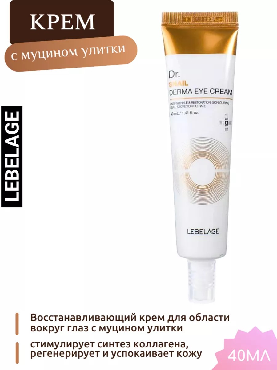 LEBELAGE Dr. Snail Derma Eye Cream 40ml Восстанавливающий крем для области вокруг глаз с муцином улитки 40мл. Представляем вам уникальный продукт от LEBELAGE — Корейский Восстанавливающий крем для области вокруг глаз с муцином улитки. Этот крем станет незаменимым средством в вашем уходе за кожей вокруг глаз, даря ей интенсивное питание, увлажнение и омолаживающий уход.