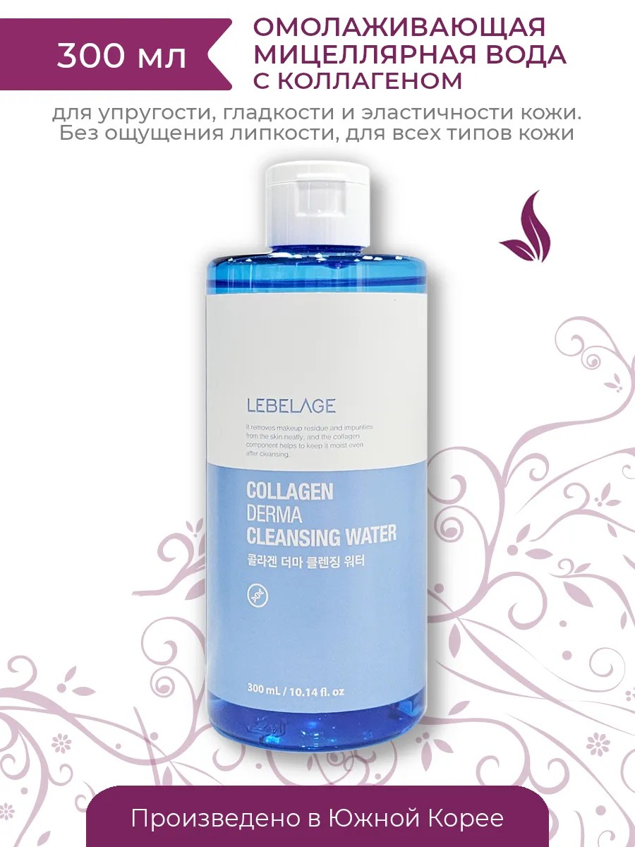 Lebelage Collagen Derma Cleansing Water это инновационная очищающая вода, обогащенная коллагеном, специально разработанная для укрепления и омоложения кожи. Коллаген является ключевым компонентом, отвечающим за упругость и эластичность кожи. Формула этой очищающей воды мягко и эффективно очищает пыль, макияж и загрязнения, освежая и оживляя кожу. Коллаген помогает улучшить структуру кожи, уменьшить появление морщин и признаков старения, делая кожу более гладкой и молодой. Lebelage Collagen Derma Cleansing Water также содержит другие полезные ингредиенты, которые обеспечивают глубокое увлажнение и питание кожи. Это помогает сделать кожу более мягкой, увлажненной и сияющей. Эта очищающая вода имеет легкую и свежую текстуру, которая быстро впитывается в кожу без ощущения липкости или остатка на поверхности. Она подходит для всех типов кожи и идеально подходит для ежедневного использования. Способ применения: Аккуратно выдавите немного средства на ватный диск, после чего протрите им кожу круговыми движениями. Можно использовать воду как вечером, для снятия остатков макияжа, так и утром, для тонизирования и освежения лица.