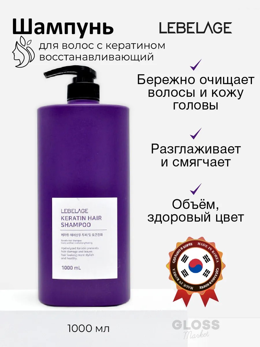 | Комплектация | Восстанавливающий шампунь для поврежденных волос с кератином Keratin Hair Shampoo 1000 мл |