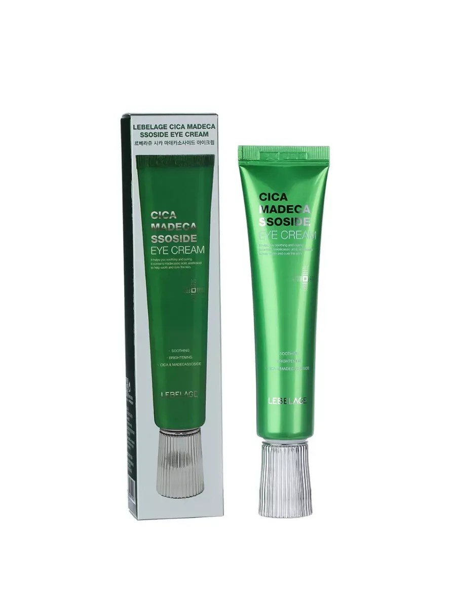 Lebelage, Крем для кожи вокруг глаз с экстрактами центеллы азиатской и мадекассосидом Madecassoside Eye Cream , 40 мл. Крем для кожи вокруг глаз, содержащий богатую формулу активных ингредиентов, включая экстракт центеллы азиатской и мадекассосид. Этот крем для глаз помогает устранить признаки усталости вокруг глаз, включая темные круги, мешки под глазами и признаки старения. Средство также улучшает эластичность кожи, уменьшает количество и глубину мелких морщин в области вокруг глаз, питает и увлажняет кожу. Способ применения: нанести крем на очищенную и тонизированную кожу по орбитальной кости мягкими похлопывающими движениями.
