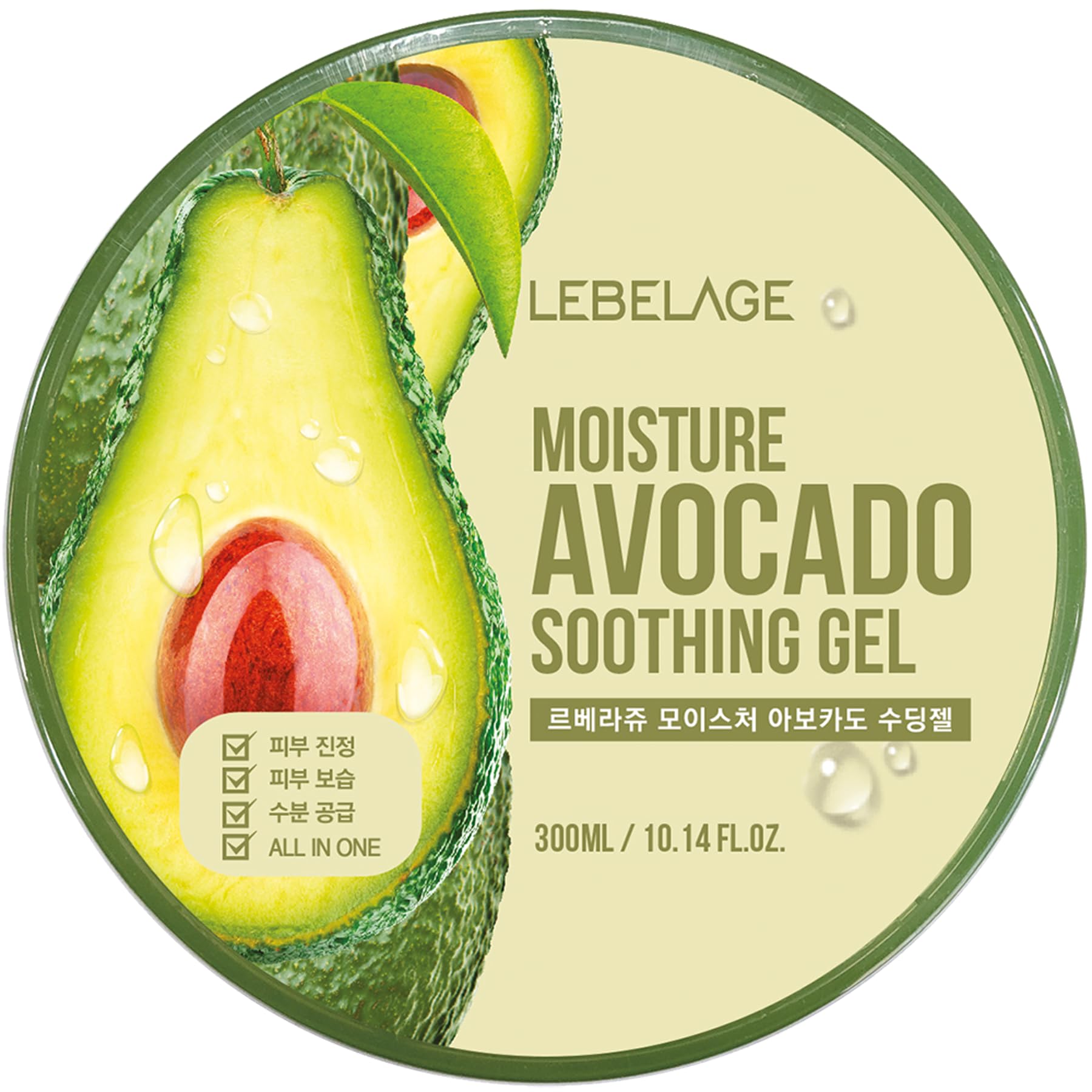 LEBELAGE Soothing Gel Avocado 10.14 fl oz | Lightweight Moisture Gel with Avocado Extract | Fast-Absorbing Face & Body Gel for Daily Skincare Routine