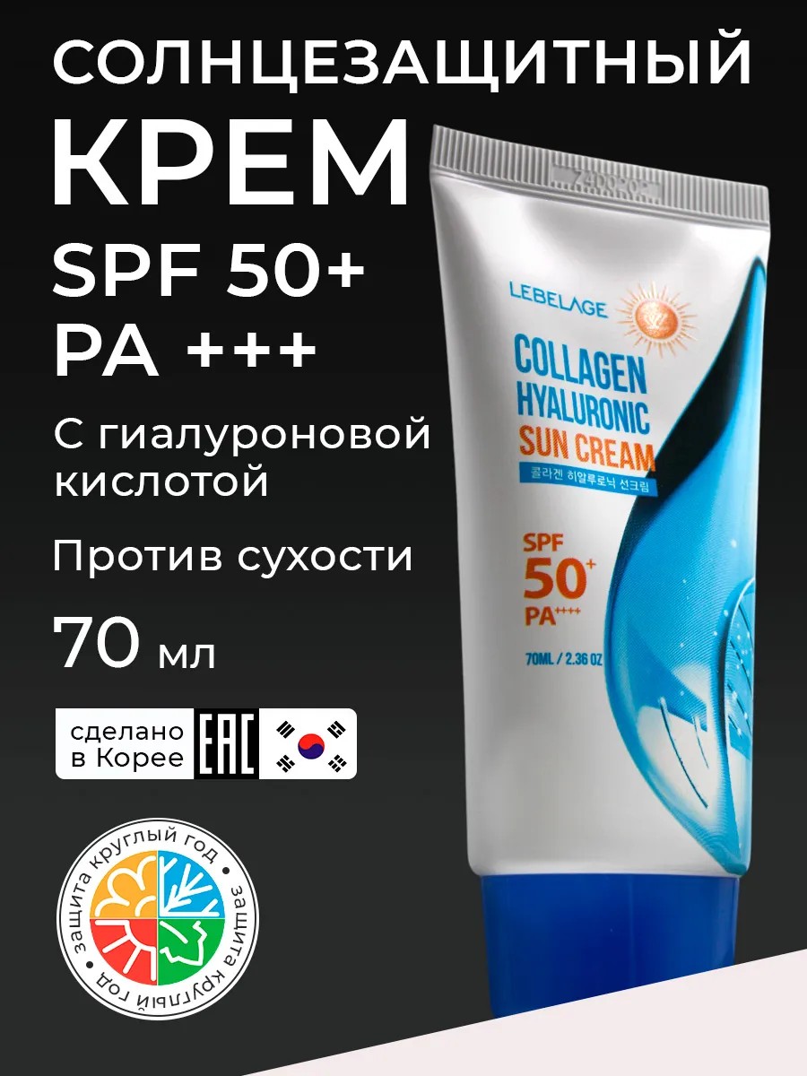 Коллагеновый гиалуроновый солнцезащитный крем для лица Collagen Hyaluronic Sun Cream SPF50+ PA+++ южнокорейской марки Lebelage подходит всем, особенно рекомендован для кожи с признаками возрастных изменений.Нежная, в меру плотная консистенция легко распределяется на поверхности кожного покрова, хорошо впитывается, надёжно защищает от разрушительного действия ультрафиолета и других солнечных лучей А и В спектра, благодаря фильтру SPF50+ PA+++.Средство также увлажняет, питает, смягчает и разглаживает кожу, устраняет сухость, раздражение и шелушение, предотвращает их появление, укрепляет барьерную функцию эпидермиса, предупреждает фотостарение.Благодаря наличию в составе экстракта азиатской центеллы, гиалуроновой кислоты и коллагена, крем укрепляет и восстанавливает кожу, делает её более подтянутой, надолго сохраняет увлажнение, уменьшает морщины, оказывает противовоспалительное и успокаивающее действие.Преимущества:Высокая степень защиты - Обеспечивает надежную защиту от UVA и UVB лучей с помощью SPF50+ PA+++.Увлажнение - Благодаря гиалуроновой кислоте увлажняет кожу, предотвращая сухость.Питание кожи - Содержит компоненты, которые питают кожу, улучшая её здоровье.Смягчение и разглаживание - Делает кожу более мягкой и гладкой.Устранение раздражений - Успокаивает кожу, устраняет раздражение и шелушение.Противовоспалительное действие - Экстракт азиатской центеллы оказывает противовоспалительное и успокаивающее действие.Предотвращение фотостарения - Защищает от фотостарения, укрепляет барьерную функцию эпидермиса.Укрепление и восстановление - Коллаген помогает укреплять и восстанавливать кожу, делая её более упругой.Уменьшение морщин - Способствует уменьшению морщин, улучшая текстуру кожи.Длительное увлажнение - Надолго сохраняет увлажнение, поддерживая кожу в отличном состоянии.