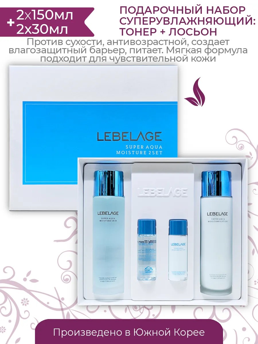 | Комплектация | Тонер Lebelage Super Aqua Moisture Skin — 150 мл.; Лосьон Lebelage Super Aqua Moisture Lotion — 150 мл.; Мини версии тонера и лосьона по 30 мл. |
