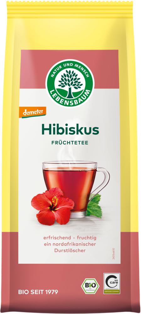 Taste: Storage and Use: Please store in a dry place. Production: Our hibiscus tea develops a fresh, citrusy fruit flavor and shines a garnet color in your cup. In Egypt and Sudan, hibiscus tea—or karkadeh—is offered on every street corner. Our hibiscus comes directly from the Egyptian farm Sekem. It is grown for you using organically dynamic methods, hand-picked, and sun-dried. This tea is also a true delight when cold. Preparation: Use 1-2 teaspoons per cup. Pour fresh, boiling, sparkling water over the tea and let it steep for 10 minutes. This is the only way to ensure a safe product. Certifications: We Care EU, German Organic Seal INGREDIENTS Hibiscus