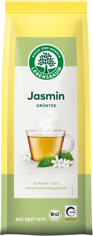 Finish: Thanks to the fragrant fresh jasmine blossoms, the leaves of this green tea have an enchanting aroma. Our jasmine tea is pure and delicate in taste and has a pale yellow color. In China, this is known as the marriage of the two ingredients, where freshly picked jasmine blossoms are blended with still-damp tea leaves. The layering and harvesting of the blossoms are done by hand – this is the traditional method. Certified organic by the German organic label. INGREDIENTS Jasmine Green Tea INSTRUCTIONS Preparation: Pour 1 heaped teaspoon per cup with hot, but not boiling, water and let the tea steep for 1 to 2 minutes for a stronger flavor. Preparation: Pour 1 heaped teaspoon per cup with hot, but not boiling, water. Let the tea steep for 1 to 2 minutes for a delicate aroma for a stronger flavor, let it steep for a few minutes. SAFETY WARNING Allergy Information: Not in production: eggs, fish, milk, tree nuts, peanuts, sesame, gluten, soy, celery, mustard, lupin, molluscs See moreLebensbaum Jasmine bio - Feuille (6 x 75 g) 6 x 75 grDESCRIPTION DU PRODUIT DESCRIPTION DU PRODUIT Finition : grâce aux fleurs de jasmin fraîches parfumées, les feuilles de ce thé vert ont une note parfumée envoûtante. Notre thé au jasmin est pur et délicat au goût et a une couleur jaune pâle. On parle de mariage des deux ingrédients en Chine, quand des fleurs de jasmin fraîchement cueillies se marient aux feuilles de thé encore humides. L'application par couche et le ramassage des fleurs sont faites à la main - c'est ainsi que veut la tradition. Certification enEU bio label allemand biologique. INGRÉDIENTS Thé vert jasmin MODE D'EMPLOI Préparation : versez 1 cuillère à café surélevée par tasse avec de l'eau chaude qui n'est plus bouillante et laissez infuser le thé pendant 1 à 2 minutes pour un goût plus puissant. Préparation : 1 cuillère à café surélevée par tasse avec de l'eau chaude et non bouillante. Le thé pour un arôme fin 1 à 2 minutes, pour un goût plus puissant. Laissez infuser quelques minutes. AVERTISSEMENT DE SÉCURITÉ Informations sur les allergies : pas en production : œufs, poissons, lait, noix, cacahuètes, sésame, gluten, soja, céleri, moutarde, lupine, mollusque Voir plus