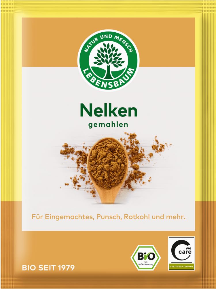 Finish: The taste of carnations combines sweet with peppery notes. This means they go just as well with compott and pastries as they do with their heart. No matter what dish you choose, only used sparingly, carnations bring real pleasure. Spicy carnations have been known in Europe since the Middle Ages. They came from exotic islands on commercial ships. Then, just like today, a lot of work goes into the small, invisible flower buds of tall, inviting trees, they are harvested and carefully read by hand. Certification German state organic seal EU organic seal INGREDIENTS Nelken INSTRUCTIONS FOR USE For crawling pickled, punch, red cabbage and more. For crawling pickled, punch, red cabbage and more. See moreLebensbaum Biologische anjers, gemalen (6 x 10 g) Afwerking: De smaak van anjers combineert zoete met peperrigem. Daardoor passen ze net zo bij compott en gebak als bij harte. Ongeacht voor welk gerecht je kiest, alleen zuinig gebruikt, brengen anjers echt genot. De kruidige anjers in Europa zijn al sinds de middeleeuwen bekend. Ze kwamen met commerciële schepen van exotische eilanden. Toen net als vandaag zit in de kleine onschijnbare bloemknoppen veel werk van hoge uitnodigende bomen worden ze geoogst en zorgvuldig met de hand gelezen. Certificering Duitse staatsbiologisch zegel EU biologisch zegel INGREDIËNTEN Nelken GEBRUIKSAANWIJZING Voor het kruipen van ingemaakte, punch, rode kool en meer. Voor het kruipen van ingemaakte, punch, rode kool en meer. Meer bekijken