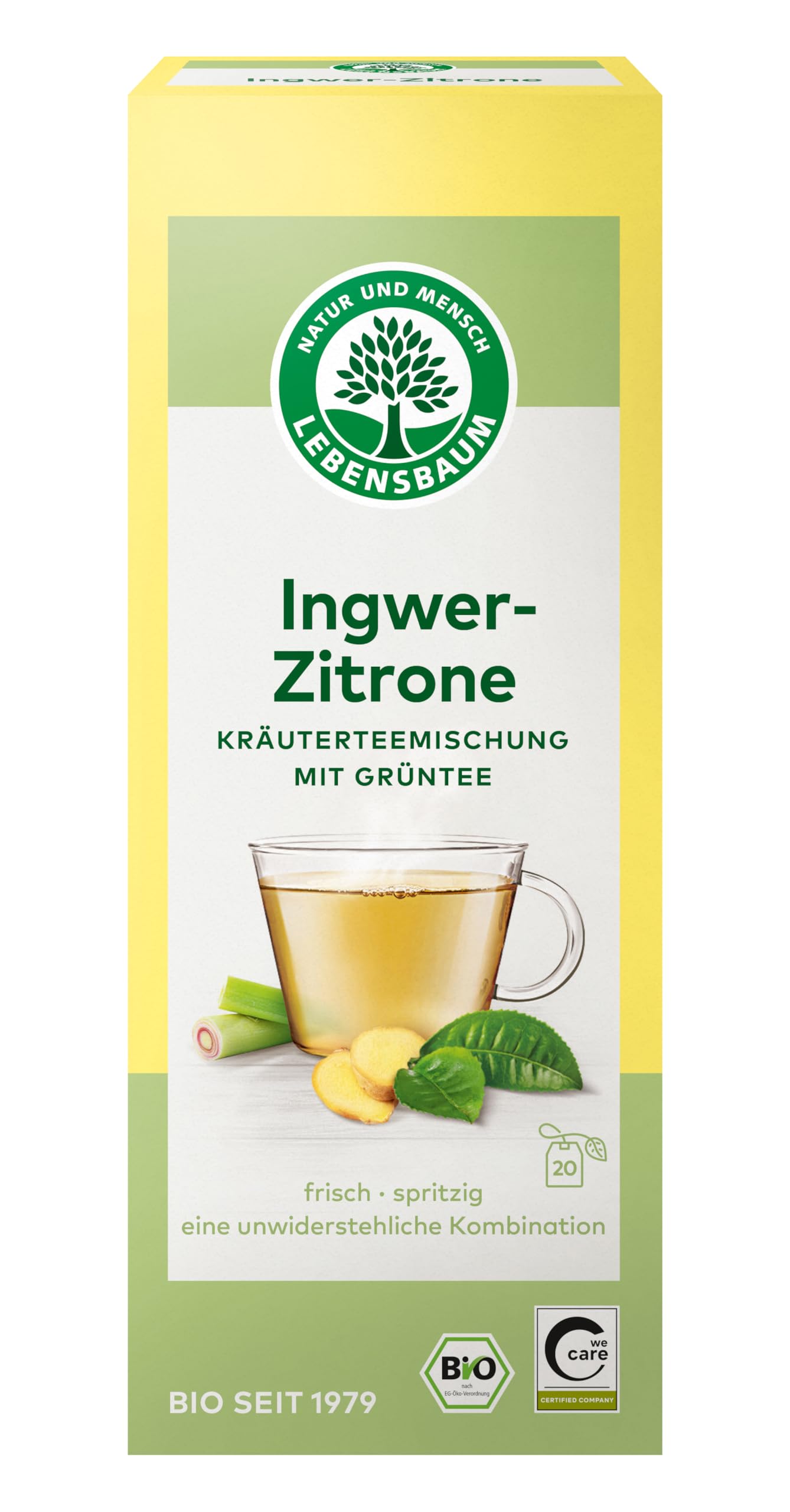 Our organic green tea with ginger and lemon is an invigorating and refreshing blend with a fresh, lemony taste, complemented by a touch of exotic zest from ginger. INGREDIENTS Green tea (30 ), lemongrass (28 ), ginger (18 ), peppermint, lemon verbena, licorice, lemon peel . ingredients from organic farming INSTRUCTIONS Preparation: Pour one tea bag per cup with hot, not boiling, water and let the tea steep for 2 minutes. SAFETY WARNING DE-ÖKO-001. May contain traces of: lactose See more