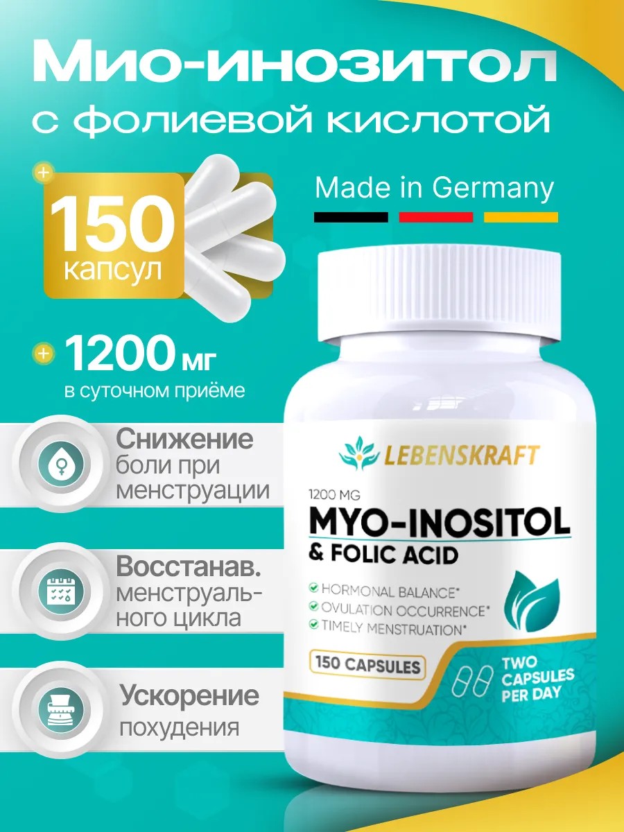 LEBENSKRAFT Мио инозитол с фолиевой кислотой 1200мг 150 капсул