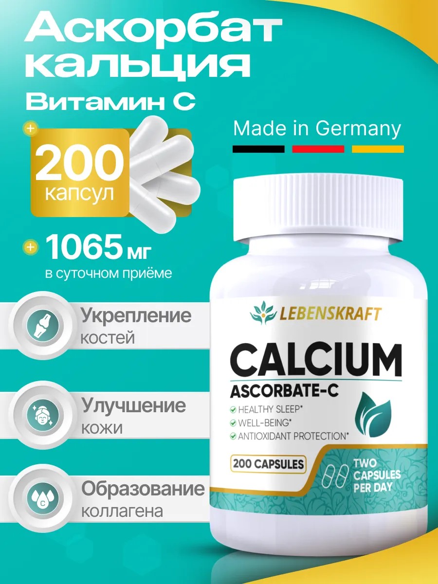 Аскорбат кальция — это особая форма витамина C, которая менее кислотная и более мягкая для желудка, что делает ее идеальной для людей с чувствительным пищеварением. Кроме того, кальций, входящий в состав этой формы витамина C, поддерживает здоровье костей и зубов.