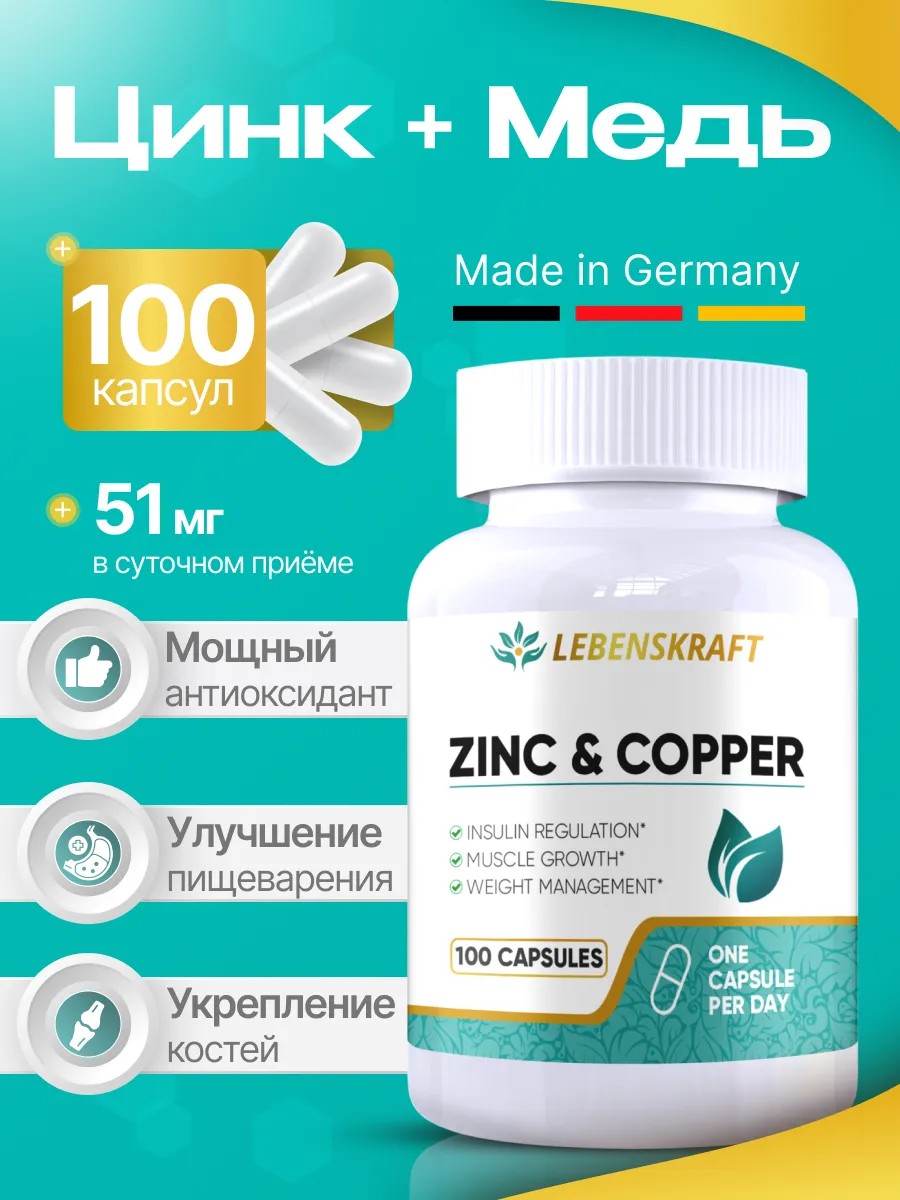 Откройте для себя пользу наших высококачественных добавок с цинком и медью! Цинк и медь — это два важнейших микроэлемента, которые играют ключевую роль в поддержании здоровья и благополучия вашего организма. В сочетании они обеспечивают мощную поддержку иммунной системы, способствуют здоровью кожи, волос и ногтей, а также помогают поддерживать нормальный метаболизм.