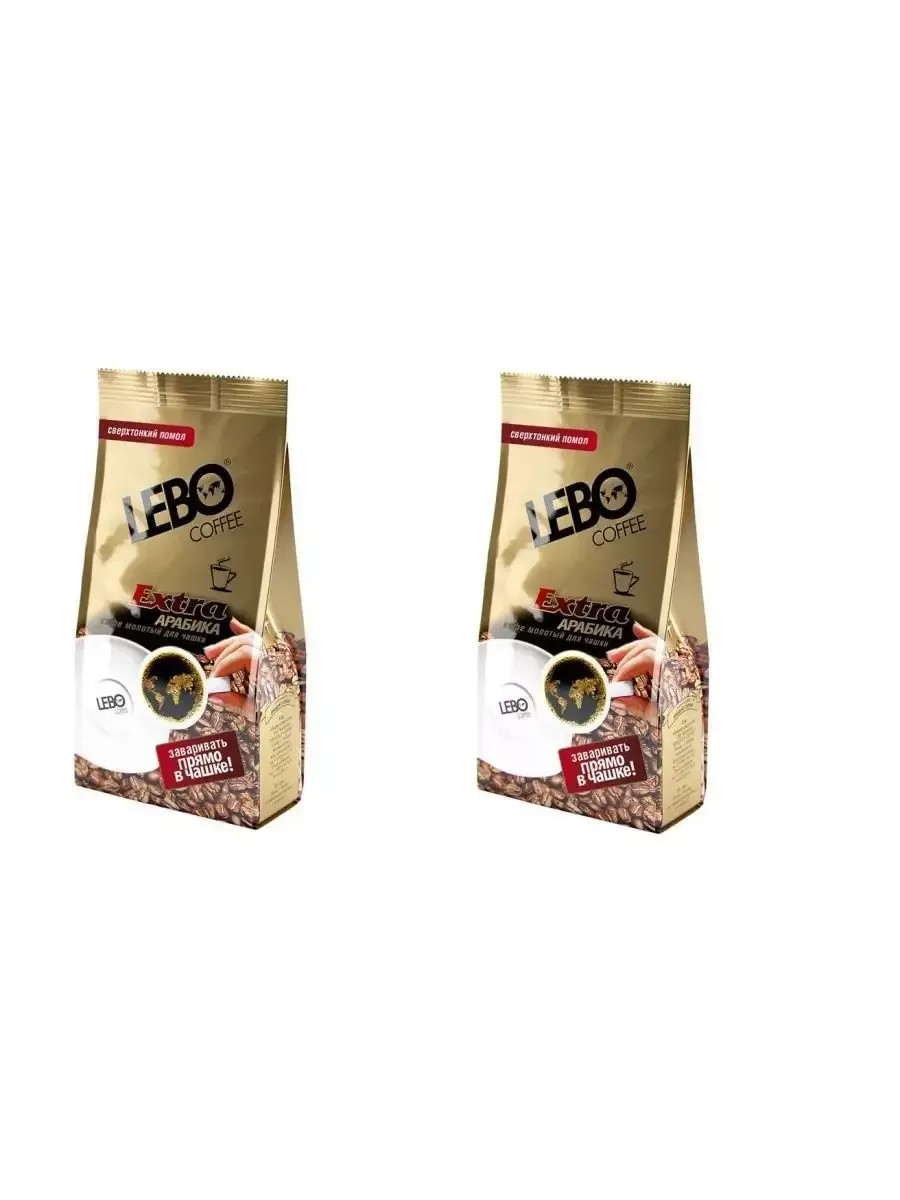 Lebo Кофе молотый Extra для чашки. Комплект из 2 шт, общий вес комплекта 200 г. Молотый кофе Lebo Extra для чашки понравится всем любителям настоящего кофе, которые ищут что-то новое и уникальное в повседневном употреблении этого напитка. Сверхтонкий помол из лучших сортов арабики Южной Америки, Азии и Африки прекрасно подойдет для приготовления прямо в чашке и поможет раскрыть загадочный вкус кофе с легкими цитрусовыми нотками и шоколадным оттенком.