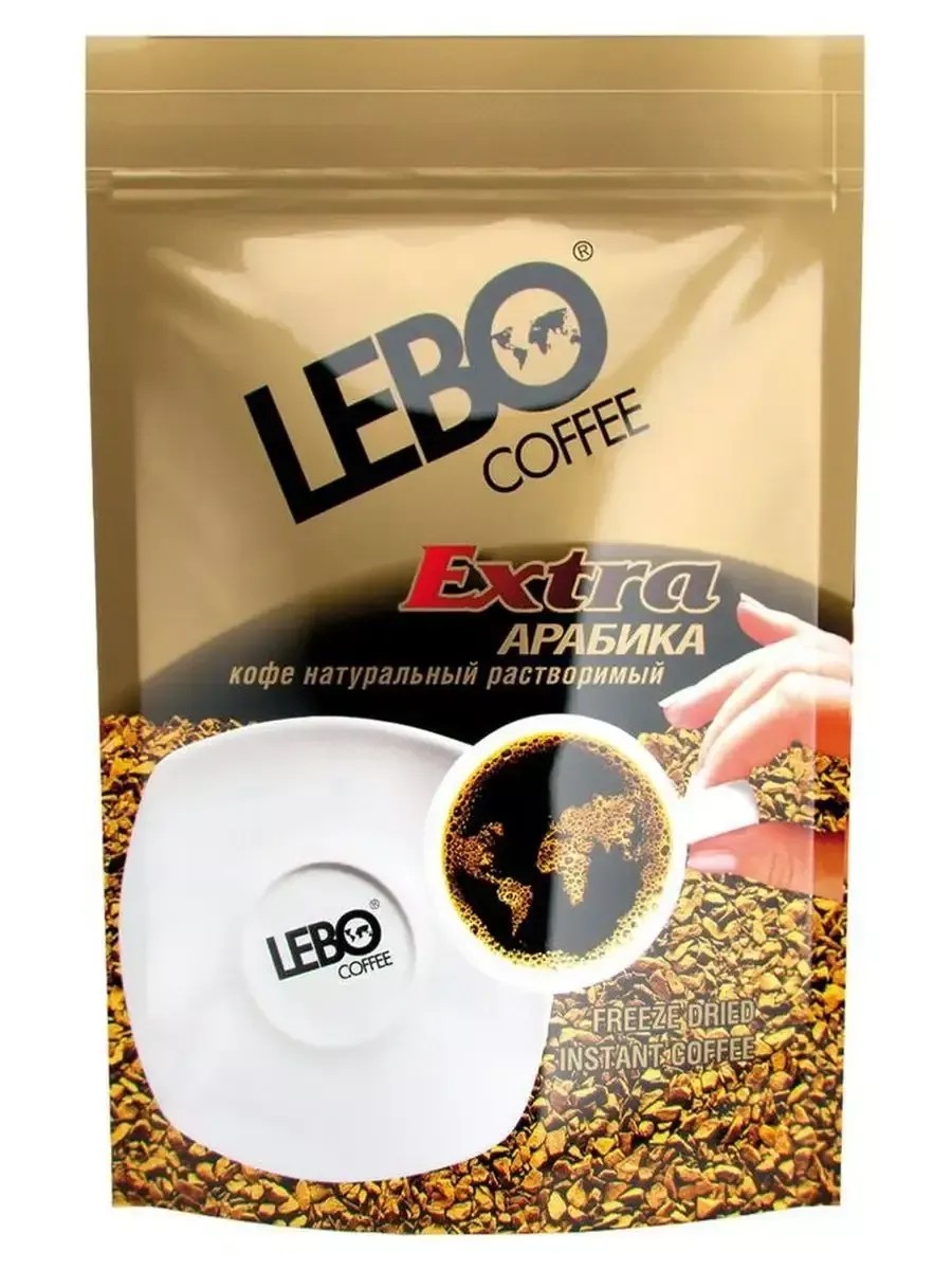 Lebo Extra Кофе сублимированный 100 г. Натуральный растворимый сублимированный кофе Lebo Extra обладает всеми вкусовыми достоинствами и сохраняет полезные свойства натурального кофе. Насладитесь ярким вкусом без лишних усилий, заваривая растворимый кофе прямо в чашке. Достоинство линейки Extra в полноте и богатстве вкуса, украшенном нотками шоколада и апельсина. Хорошее утро начинается с Lebo !