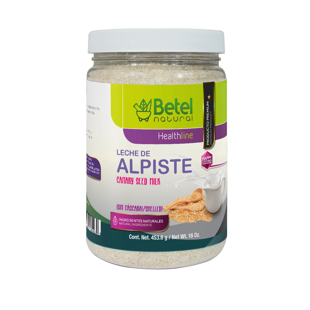 Leche de Alpiste by Betel Natural. Canary seed milk powder from Betel is made with nothing more than ground human grade, silica free, canary seeds. Betel Natural makes it easy to take canary seed powder without the hassle of straining and trying to get the best out of the seed. All you have to do is mix with water and enjoy! Canary seed milk powder has a refreshing nutty taste and is a perfect addition to any morning shakes. Betel's all natural Alpiste is made with nothing more than high quality, silica free alpiste powder. Begin a healthier you, today!