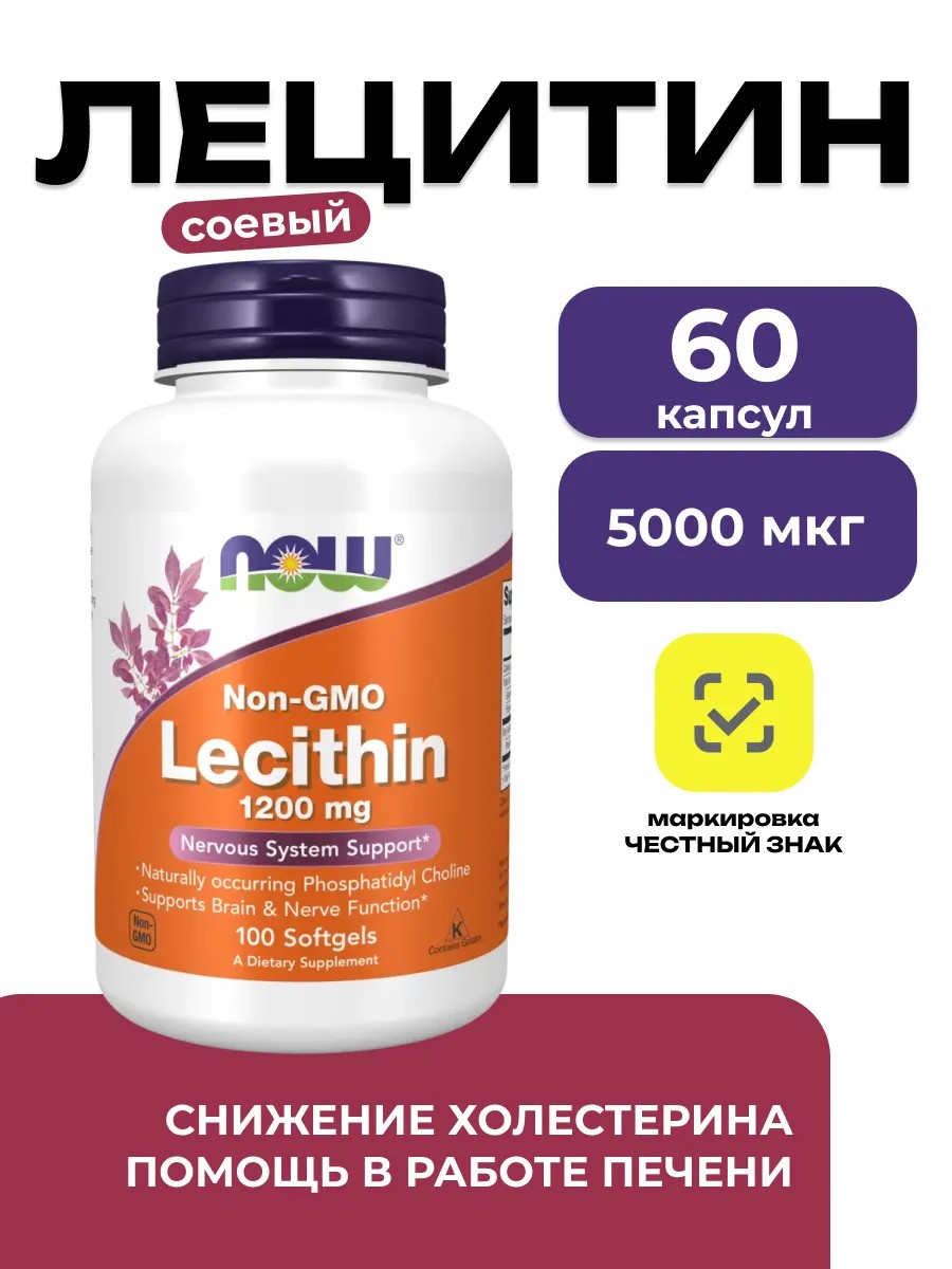 Кроме того, лецитин благотворно влияет на сердечно-сосудистую систему. Он помогает нормализовать уровень липидов в крови, снижая содержание "плохого" холестерина (LDL) и повышая уровень "хорошего" (HDL). Это способствует профилактике атеросклероза, улучшает циркуляцию крови и снижает риск сердечно-сосудистых заболеваний. Лецитин также поддерживает здоровье кожи, способствует усвоению жирорастворимых витаминов (A, D, E, K) и улучшает общее состояние организма. Продукт от NOW производится из высококачественного сырья, не содержит ГМО, искусственных добавок и подходит для тех, кто заботится о своем здоровье и выбирает натуральную поддержку на каждый день.