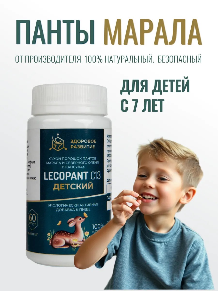 LECOPANT безопасен для детей старше 3 лет и не имеет противопоказаний. Порошок пантов марала рекомендован детям при дефиците витаминов и минералов, а также для общего укрепления здоровья и повышения иммунитета.