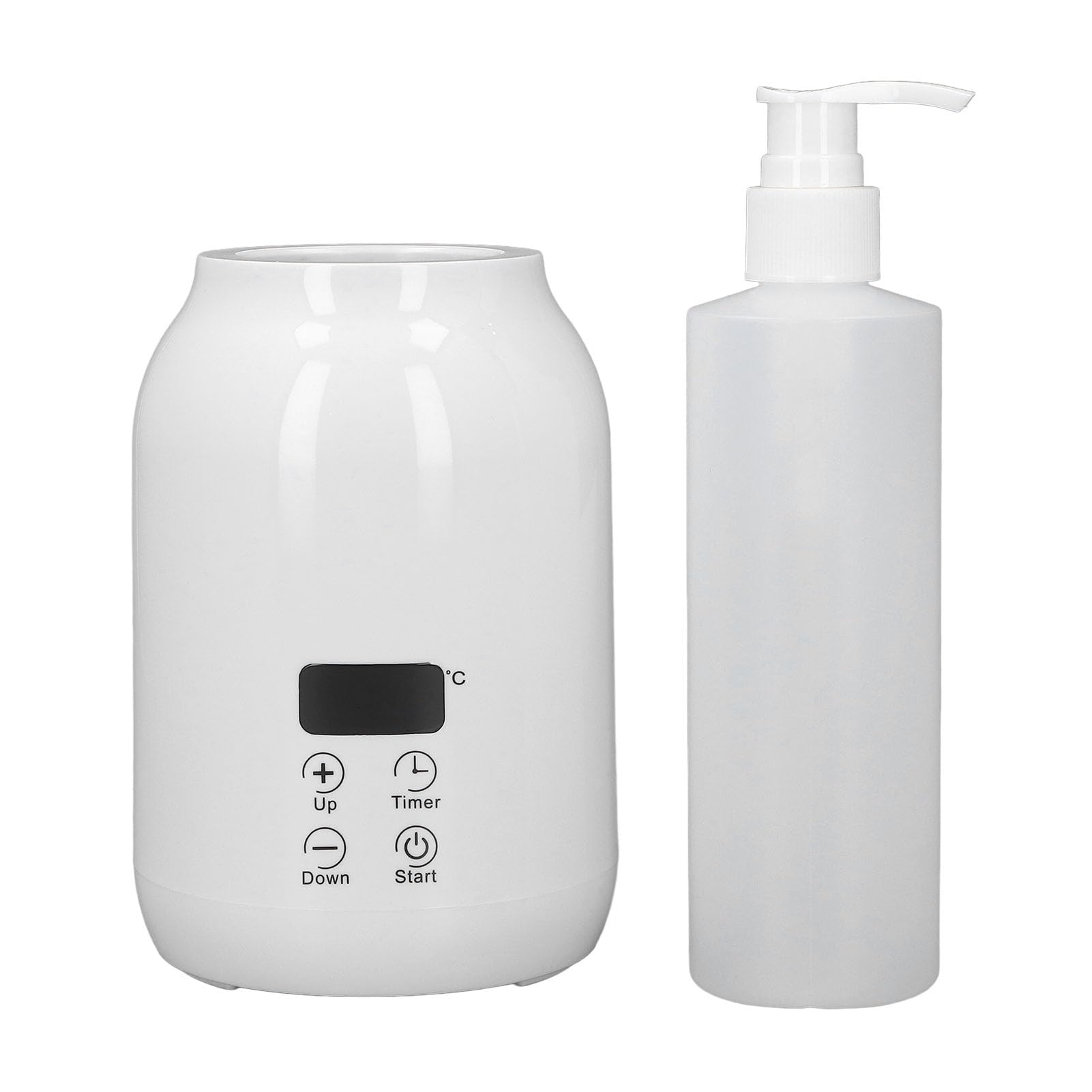 [Keep Products Warm] : Ensure your body creams, oils, and moisturizers stay at an ideal temperature for a soothing and relaxing massage. [Led Display] : Keep track of real-time temperature with the convenient led display, adjusting as needed for the perfect massage experience. [Compact and Portable Design] : Perfect for massage therapists on the go, this warmer is easy to carry for warm and comforting massages anywhere. [Compatible with Uk Plugs] : The touch-controlled lotion warmer comes with a uk plug, ideal for use in regions with uk standard electrical outlets. [Adjustable Temperature and Timer] : Easily adjust temperatures from 30to 65, with a timer function for preheating from 1 to 24 hours, making it user-friendly. Spec: Item Type: Massage oil heater Material: ABS Plug: UK plug 100-240V Use: Can heat the essential oil, bring a pleasant massage experience Package List: 1 x Massage Oil Heater2 x Essential Oil Bottles 2 x Pump Heads 1 x Instruction 1 x Power Cord How To Use: 1. Fill the bottle dispenser provided with essential oils and creams and place it in the heater. Then press the Start button to adjust the temperature. 2. Automatically set to 65 C (149 F), when the screen is activated, the indicator light comes on and the machine starts to heat up. 3 . The temperature can be adjusted from 30 C (86 F) to 65 C by pressing the or - button. The maximum setting temperature of the heater is 65 C (149F) and the appliance will stop automatically when the maximum temperature of the oil, lotion or cream is reached. 4. Adjust the temperature and then press the Timer button to delay the start. Press or to adjust the time (from 1 hour to 24 hours). For example, if you want to start the machine after one hour. Set a suitable temperature, then press Timer, set the timer to O1 and the machine will start heating after one