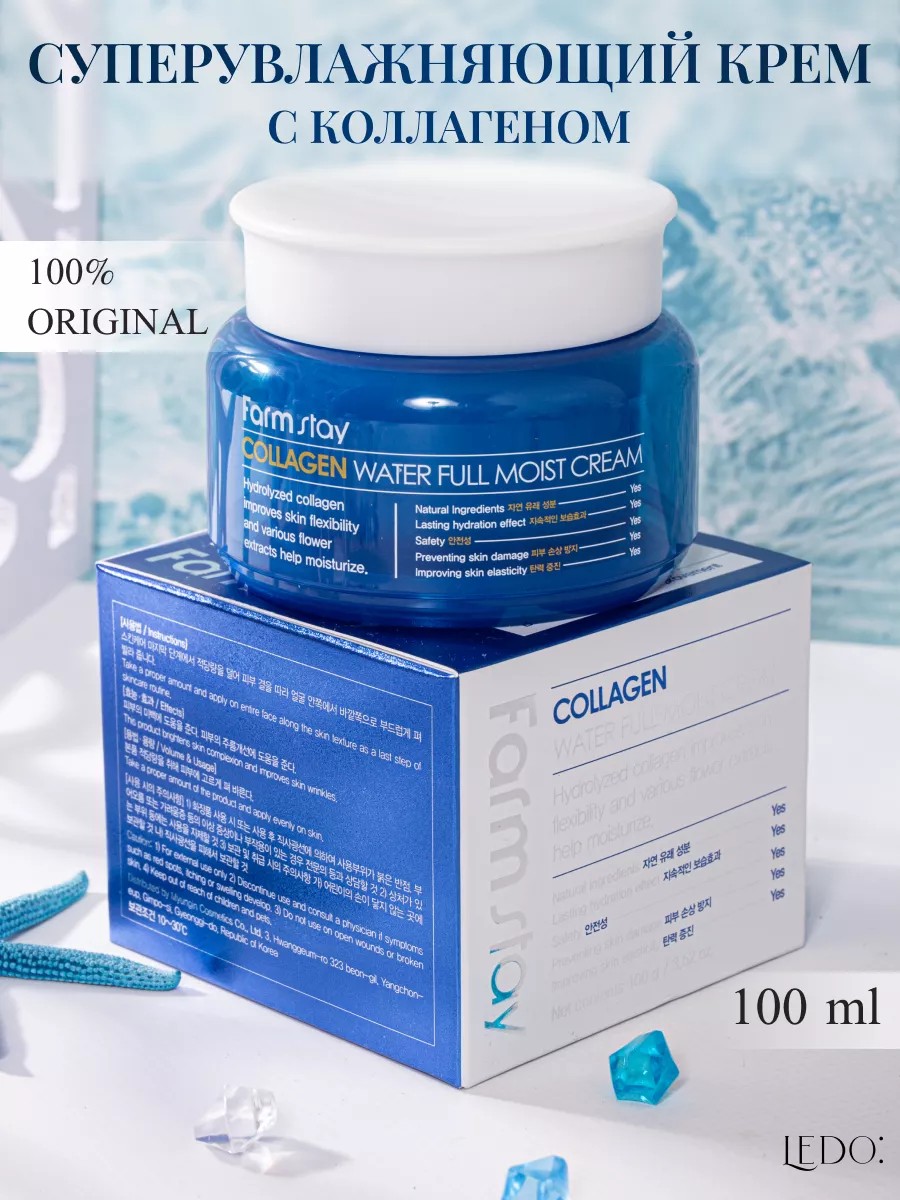 Увлажняющий крем для лица с гидролизованным коллагеном Collagen Water Full Moist Cream от корейского бренда FARMSTAY активно борется с возрастными изменениями кожи, разглаживает морщины, снимает отёчность, уменьшает вялость эпидермиса, повышает его эластичность и упругость.