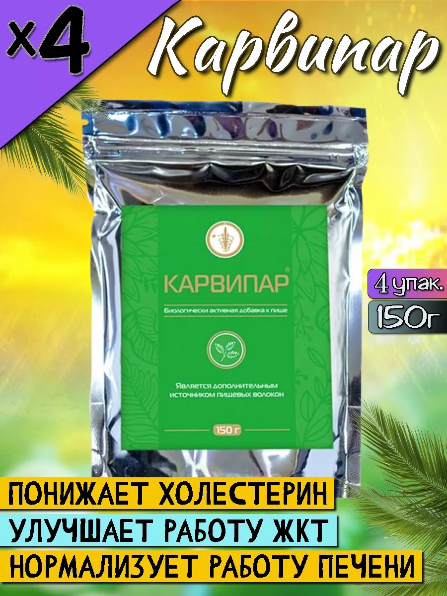 Основное действие препарата направлено на нормализацию печени и работы желудочно-кишечного тракта. Препарат успешно очищает печень и ЖКТ от разнообразных вредных веществ и токсинов (алкогольных, или токсинов которые выделяют черви паразиты). Препятствует образованию песка и камней во внутрипеченочных протоках, устраняет кожные аллергические реакции, нормализует процесс пищеварения. Основное действие препарата направлено на нормализацию работы желудочно-кишечного тракта и печени и их защиту от токсинов( токсинов выделяемых паразитами (острицами, лямблиями, аскаридами, описторхами), и токсинов выделяемых различными вредными веществами (алкоголь). Замечательно снимает с печеночных клеток отек, препятствует образованию камней в желчи и желчных протоках, нормализует уровень и содержание билирубина в крови, улучшает отток и поверхностное натяжение желчи, нормализует уровень холестерина в крови. Кроме этого Карвипар ликвидирует проявления аллергического характера(жжение, зуд, кожные высыпания). Препарат снижает процессы гниения и брожения в кишечнике, приводит в тонус и норму кишечную мускулатуру. Устраняет горечь во рту, изжогу, боли в области кишечника и печени, запоры. Защищает человека от проникновения паразитов (аскарид, лямблий, остриц, описторхов), способствует их успешному выведению. Состав препарата: Пшеничные отруби, плоды тмина и укропа, обработанные по специальной технологии. Содержит большое количество растительных волокон, эфирные масла, флавоноиды (кверцетин, кемпферол), дубильные вещества, минеральные соли, микроэлементы (железо, калий, магний, фосфор, кальций), сильнопахнущие соединения: лимонен карвон, карвакрол, горечи. Показания к применению: при описторхозе, лямблиозе и их последствиях; хронических холециститах, холангитах, дискинезии желчевыводящих путей, деформации желчного пузыря; желчнокаменной болезни и состояниях после удаления желчного пузыря; хронических гепатитах и жировом гепатозе; при повышенном содержании билирубина в крови; различного рода интоксикациях и состояниях после приема препаратов токсического действия (празиквантела, бильтрицида, тиберала, фуразолидона и др.); спастических и атонических колитах, запорах, аллергических состояниях и дисбактериозе; атеросклерозе, стенокардии напряжения и покоя, гипертонической болезни, предынсультном и предын-фарктном состояниях; после сосудистых катастроф в остром и восстановительном периоде (снижение уровня липидов в крови); миомах и мастопатиях в комплексном лечении. Способ применения по 1 ч. л. 3 раза в день за 15 минут до еды, запивая 100–200 мл жидкости. Курс — 14–28 дней. У детей до 12 лет доза снижается в 2 раза. У детей до 3 лет, в том числе грудных, применяется в виде настоя: 1 ч. л. на стакан кипятка, настаивать в течение часа, выпить равными дозами в течение дня. Противопоказания: Индивидуальная непереносимость компонентов продукта, беременность, кормление грудью. Форма выпуска: порошок, 150 г в упаковке. Условия хранения: в сухом месте при комнатной температуре.