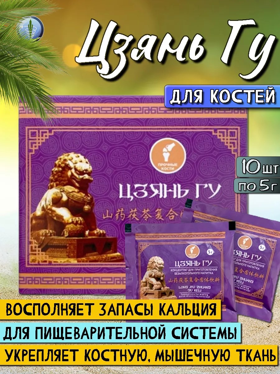 Концентрат Цзянь Гу - это уникальный продукт, созданный на основе интегративного подхода. Помогает укрепить кости, применяется для профилактики остеопороза. Укрепляет костную, хрящевую, мышечную ткань, восполняет запасы кальция в организме, нормализует работу пищеварительной системы, укрепляет иммунитет, нормализует подавленное состояние психики. В составе кроме десятка активных компонентов особенно выделяется кодонопсис мелковолосистый, который считается заменителем женьшеня, обладает доказанным общеукрепляющим свойством. Рекомендуется всем, кто ведет активный образ жизни, испытывает недостаток кальция, а также любителям тяжелого фитнеса и спортсменам. Состав: кодонопсис мелковолосистый, астрагал хуанчи, офиопогон японский, корневище атрактилодеса крупноголового, ямс китайский, лимонник китайский, пория кокосовидная, финик, корень солодки уральской. Способ применения и дозировка: взрослым принимать по 1-2 пакетика, предварительно растворив в воде, от 1 до 3 раз в день. для детей рекомендуется уменьшать дозировку в 2 раза относительно варианта для взрослых. Форма выпуска: 10 пакетиков по 5г.