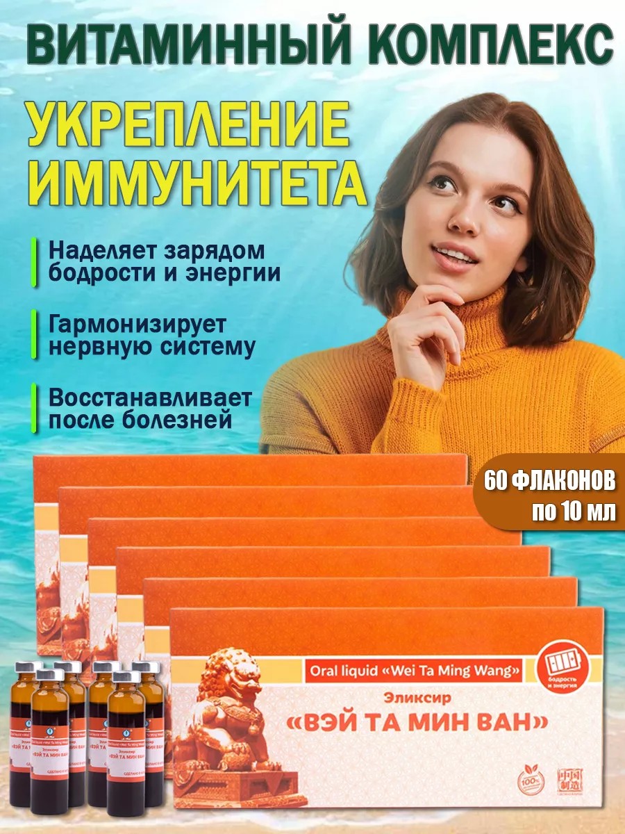 Наделяет человека зарядом бодрости и энергии, являясь природным витаминно-минеральным комплексом, восстанавливает и укрепляет после заболеваний. Повышает иммунитет, восстанавливает физическую активность и умственную работоспособность человека, улучшает настроение, приводит в гармонию нервную систему, качественно улучшает сон. Эликсир китайский «Вэй та мин ван» считается лучшим профилактическим препаратом. Натуральный витаминно-минеральный комплекс, идеально сбалансированный с помощью научных современных технологий. «Вэй та мин ван» воздействует на организм человека как общеукрепляющий, восстанавливающий и повышающий работоспособность человека. Препарат повышает бодрость и наделяет энергией в течение дня. Кроме этого препарат действует как природный имуномодулятор и гармонизатор умственной деятельности человека, улучшает ночное качество сна и поднимает настроение. Мягкий природный антиоксидант. Отлично снимает симптомы метеозависимости различной тяжести. Обладает мягким слабительным воздействием , является натуральным противокашлевым эликсиром. Повышает физическую, эмоциональную и умственную работоспособность, выстраивает естественную защиту от радио и химиотерапии. «Вэй та мин ван» питает энергией Ци желудок, селезенку, сердце, легкие. Успокаивает дух, увлажняет толстый кишечник и легкие. Состав препарата: мёд пчелиный; шиповник даурский (плоды). Плоды шиповника богаты витаминами С, В2, К, Р, Е, содержат сахара, дубильные и пектиновые вещества, лимонную кислоту и др. Мёд является источником простых углеводов, в нем представлены почти все витамины, целый набор минеральных веществ, органических кислот и ферментов. Показания к применению в период восстановления организма после заболеваний, травм, оперативных вмешательств; психоэмоциональных стрессов, умственного и физического перенапряжения; авитаминоз; синдром хронической усталости; для повышения устойчивости к стрессовым ситуациям; для улучшения умственной деятельности; при снижении аппетита, для улучшения пищеварения; для профилактики простудных заболеваний; в комплексном лечении сердечной недостаточности, атеросклероза; в комплексном лечении при заболеваниях легких. Способ применения: взрослым по 10мл 2 раза в день во время еды. Продолжительность приема – до 1 месяца. При отсутствии противопоказаний и нормальной переносимости препарата кратность приема может быть увеличена до 3 раз в день. В профилактических целях рекомендуется принимать по 10мл 2 раза в день курсами 2 раза в год (в осеннее-весенний период). Имеется осадок, перед употреблением взбалтывать! Противопоказания: индивидуальная непереносимость компонентов продукта, беременность, кормление грудью. Форма выпуска: 10 флаконов по 10 мл. Условия хранения: В сухом, прохладном месте. Срок годности: 2 года. Производитель: Харбинская пищевая корпорация «Гринспринг», КНР, г. Харбин, район Дунли, ул. Аньтунтоудао, д. 18.