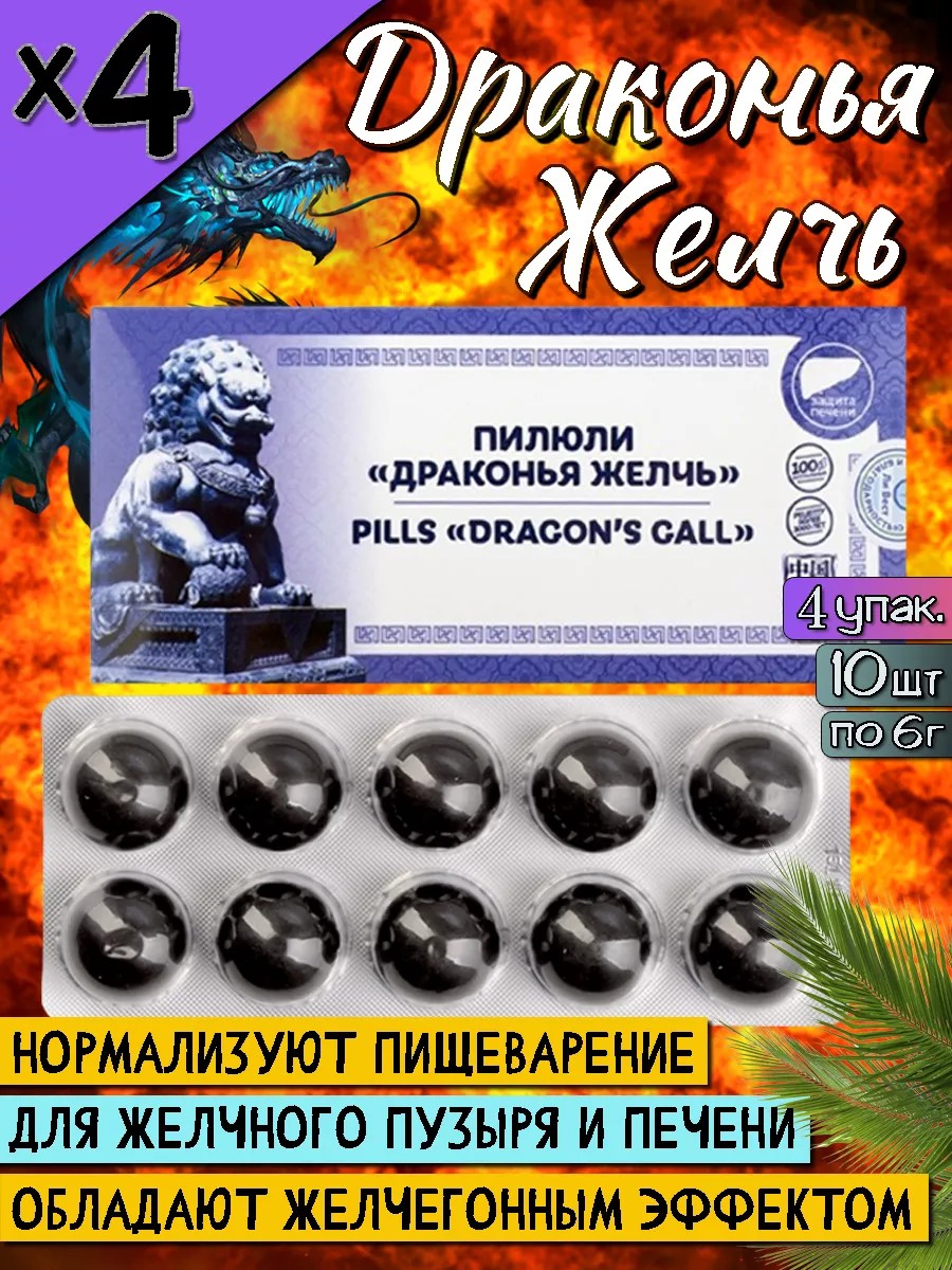 Пилюли для желчного пузыря и печени, Драконья желчь, 4 уп
