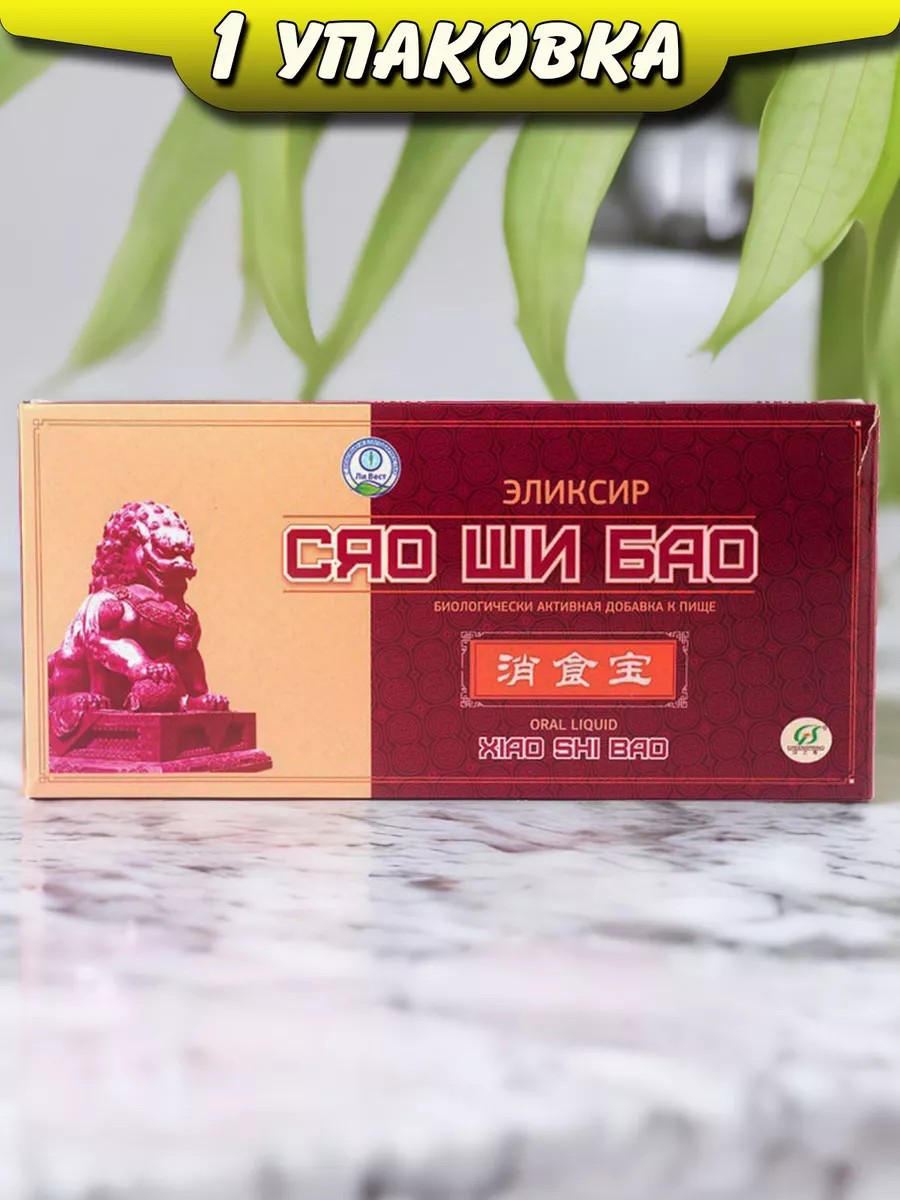 A natural digestive aid. A highly effective traditional Chinese medicine remedy. Elixir "Xiao Shi Bao" strengthens the stomach and restores spleen function, promotes digestion, and normalizes bowel movements. The elixir's traditional Chinese medicine action: The elixir harmonizes the spleen and stomach, moves and strengthens qi, helps reduce stomach heat, removes food stagnation, clears poison and heat in the Yangming meridian, nourishes qi and yin in the lungs and stomach, dries up dampness, reduces involuntary sweating, strengthens the spleen and lungs, moisturizes the intestines, stops coughing, relieves heat in the feet and palms, and normalizes zangfu function by correcting the transformation and transport functions of the stomach and spleen. Ingredients of the elixir: Garden radish seeds, aqueous extracts of hawthorn, membranous milk vetch (roots), woad root, grass liriope tuber, mandarin peel seeds, large-headed atractylodes rhizome, calcium sulfate, honey, water. The elixir is indicated for: discomfort after meals, bloating and abdominal pain; decreased appetite due to an incorrect diet; food stagnation, belching; loss of appetite, including food intolerance and anorexia; exhaustion of the stomach and spleen (indigestion); periodontal disease and gum atrophy, etc.; chronic atrophic gastritis; unpleasant, putrid odor from the mouth; profuse sweating; constant feeling of fatigue, rapid exhaustion. Contraindications: The elixir is contraindicated in case of individual intolerance to the components of the drug. Directions for use: Take 1 bottle 3 times daily before meals. Shake the elixir well before use (a slight sediment is allowed in the drug). Release form: 10 bottles of 10 ml each. Storage conditions: Store in a dark, dry place, out of the reach of children. Shelf life: 3 years. Manufacturer: China, Heilongjiang Province, Harbin, Heilongjiang Biotechnology Corporation Greenspring, Shuangcheng New Development Area, Xinxingdong Street, No. 8.