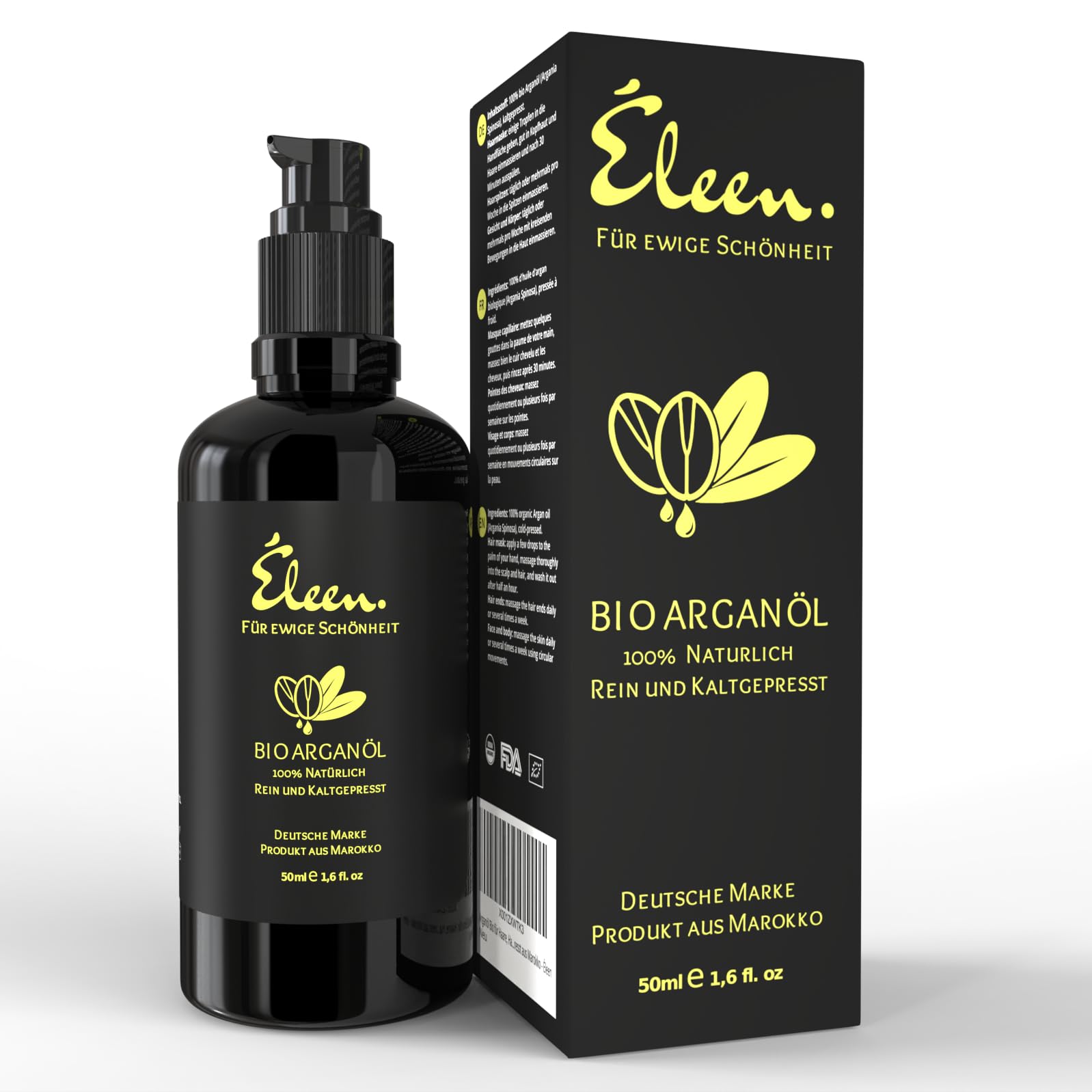 Our brand name, Éleen, pays homage to the warm rays of the sun that bring life and energy. Just as the sun illuminates your surroundings, we strive to renew your skin and hair with our premium products, giving you a radiant and youthful look. Éleen is not just about outer beauty, but also inner glow. We want to help you rediscover your natural radiance and feel comfortable and full of vitality in your own skin, like on a perfect sunny day. Our products are carefully formulated to nourish, tone, and illuminate your skin. At the same time, we support the health of your hair so it shines with youthful brilliance. 10 reasons to choose Éleen's organic argan oil: Superior quality assurance: Our argan oil is carefully crafted and undergoes strict quality controls to ensure you receive a product of the highest quality. 100 Organic Certification: Our argan oil is certified 100 organic and comes from sustainable sources that support organic farming and environmental protection. Nutrient-Rich: Our argan oil is rich in essential nutrients such as vitamin E, omega fatty acids, and antioxidants that nourish, repair, and protect the skin from free radicals. Wide Application: Our argan oil can be used for various applications, including facial care, hair care, nail care, massage oil, and even as a makeup remover. Intense Moisturizing: Our argan oil is an excellent moisturizer for dry skin because it penetrates deeply and intensely hydrates without leaving a greasy residue. Hair and Nail Revitalization: With regular use, our argan oil can help revitalize dry and damaged hair, reduce split ends, and promote healthy nail growth. Natural anti-aging effect: The antioxidant properties of argan oil help slow down skin aging, reduce fine lines and wrinkles, and promote a youthful glow. Suitable for all skin types: Our argan oil is hypoallergenic and suitable for all skin types, including sensitive and acne-prone skin. Sustainable production: At Eleen, we are committed to sustainable production and supporting fair trade to ensure our products are made ethically and with respect for the environment. Customer satisfaction: Our argan oil is loved and appreciated by many satisfied customers worldwide. We are proud to offer you a product that delivers results and exceeds your expectations. FAQ: 1. What are the steps involved in the argan oil production process in Morocco? Argan oil production in Morocco begins with the harvesting of argan nuts, followed by a gentle cold-pressing process to extract the precious oil. This traditional process preserves the oil's natural properties and nutrients. 2. Why is the cold-pressing process important for argan oil production? The oil is extracted at a low temperature to preserve its delicate nutrients and properties. This ensures maximum effectiveness and quality of the final product. 3. What advice can be given for optimal use of argan oil? Argan oil can be used in many ways, for example, as skincare, hair care, or nail care. Just a few drops, gently massaged into the skin or hair, are enough to reap the full benefits of its nourishing properties. 4. Why is our argan oil offered in a dark glass bottle? Our argan oil bottles are made of dark glass to protect the oil from harmful UV rays and light, preserving its freshness and effectiveness. Furthermore, glass is an environmentally friendly option as it is recyclable. 5. How can I recognize genuine and authentic argan oil? Genuine argan oil has a golden to amber color and a characteristic nutty aroma. It is also important to adhere to organic and authenticity certifications to guarantee the product's quality and authenticity. 6. Why does our brand prefer environmentally friendly packaging? We place great importance on environmental protection and therefore use recyclable materials such as glass for our packaging. In this way, we actively contribute to environmental protection and support the sustainability of our products. 7. What are the benefits of argan oil? Argan oil provides intense hydration for the skin, hair, and nails. It has antioxidant properties that have an anti-aging effect. Furthermore, it repairs damaged hair, soothes skin irritations, and improves skin elasticity. 8. What should be avoided when using argan oil? Avoid applying too much argan oil to your hair to prevent greasy hair. Also, avoid direct contact with the eyes to prevent potential irritation. Do not overheat the oil to preserve its effective properties. 9. How often should I use argan oil on my hair? Argan oil should be applied to the hair a maximum of twice a week to avoid overloading it and creating a greasy look. It is recommended to use it sparingly to achieve optimal results without weighing down the hair. 10. Can argan oil be used daily on the face? Yes, argan oil can be applied daily to the face. It is particularly suitable for dry areas of the skin such as the elbows or around the eyes (avoid contact with the eyes). Apply a few drops to cleansed skin and massage gently until completely absorbed. 11. How much argan oil should be used for the face and hair? For the face, about 2 to 3 drops of argan oil is sufficient. For hair, adjust the amount according to the length and thickness, but usually a few drops are enough. 12. Is argan oil suitable for babies or children? Argan oil is generally considered safe for use on the skin of babies and children. However, it is recommended to perform a skin test beforehand and consult a professional if you are unsure. 13. What are the possible side effects of using argan oil? Some people may experience allergic reactions, especially if they are sensitive to nuts. Possible side effects include skin rashes, itching, or redness. It is advisable to perform a patch test before use and discontinue use if any symptoms appear. 14. Is argan oil safe for pregnant women? Argan oil is generally considered safe for pregnant women. Nevertheless, it is recommended to consult a doctor before use to clarify any individual con