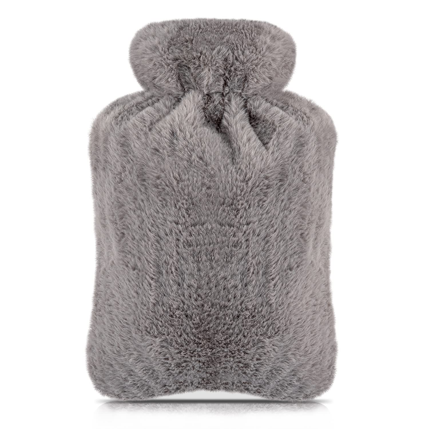 LEEVOT Hot Water Bottle Hand and Foot Warmer Portable Ice Compress 2000ml Gray Fluffy Cover
