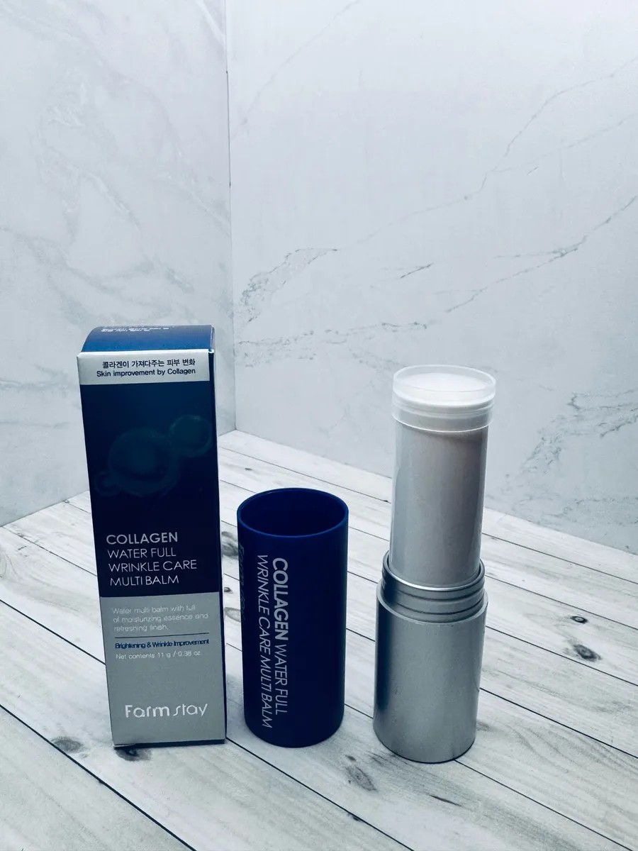 The Collagen Water Full Wrinkle Care Multi Balm is a multifunctional balm stick enriched with collagen and designed for active care of skin showing signs of aging, dehydration, and nutritional deficiency. This versatile product can be applied to lips and other areas of the face. The balm's formula contains a rich set of natural ingredients that improve tissue elasticity and firmness, replenish moisture, brighten skin, and smooth wrinkles.