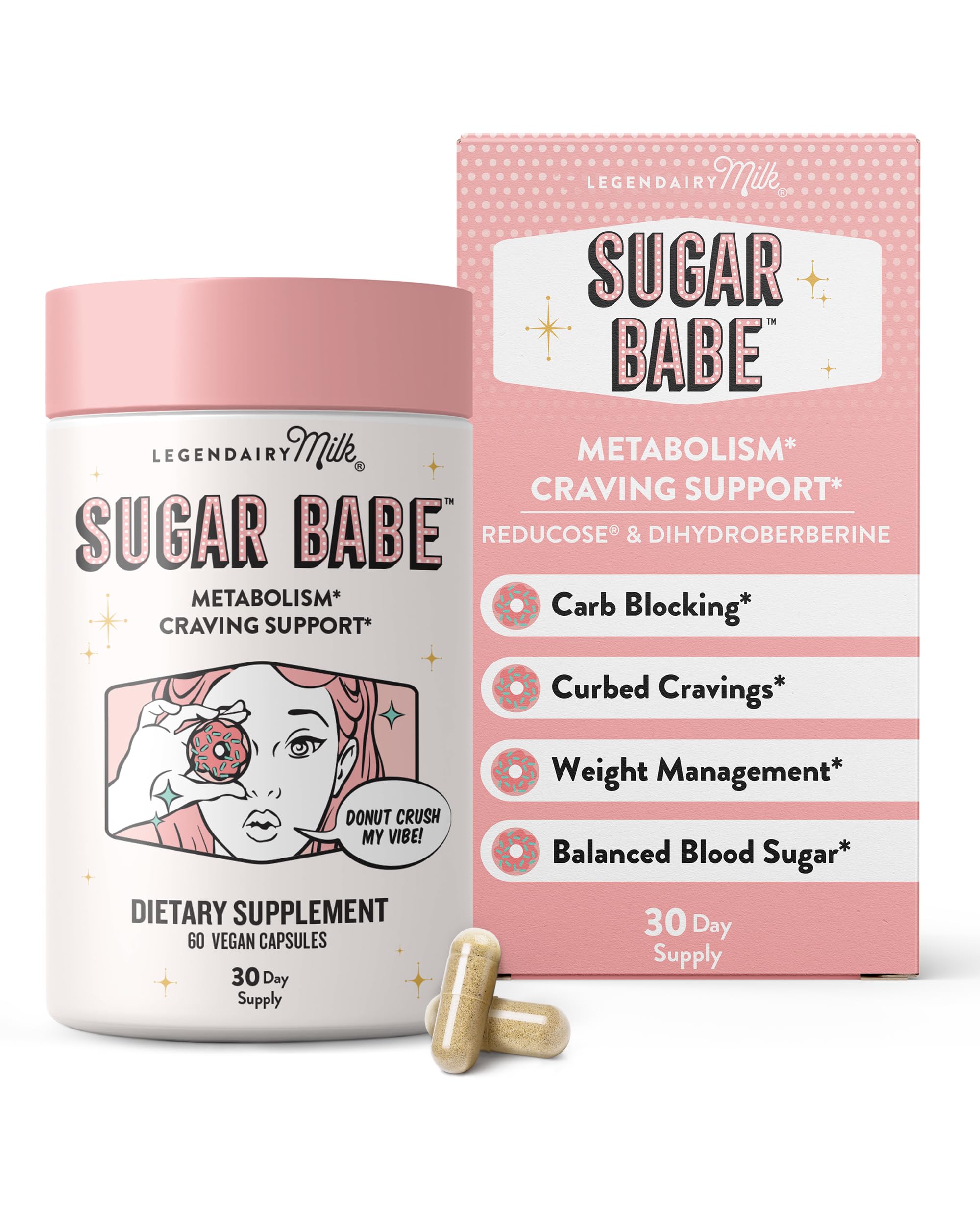 Legendairy Milk Sugar Babe - Combat Cravings & Manage Appetite - Metabolism Support - Carb Management - Dihydroberberine Supplement - 60 Capsules 1 Month Supply