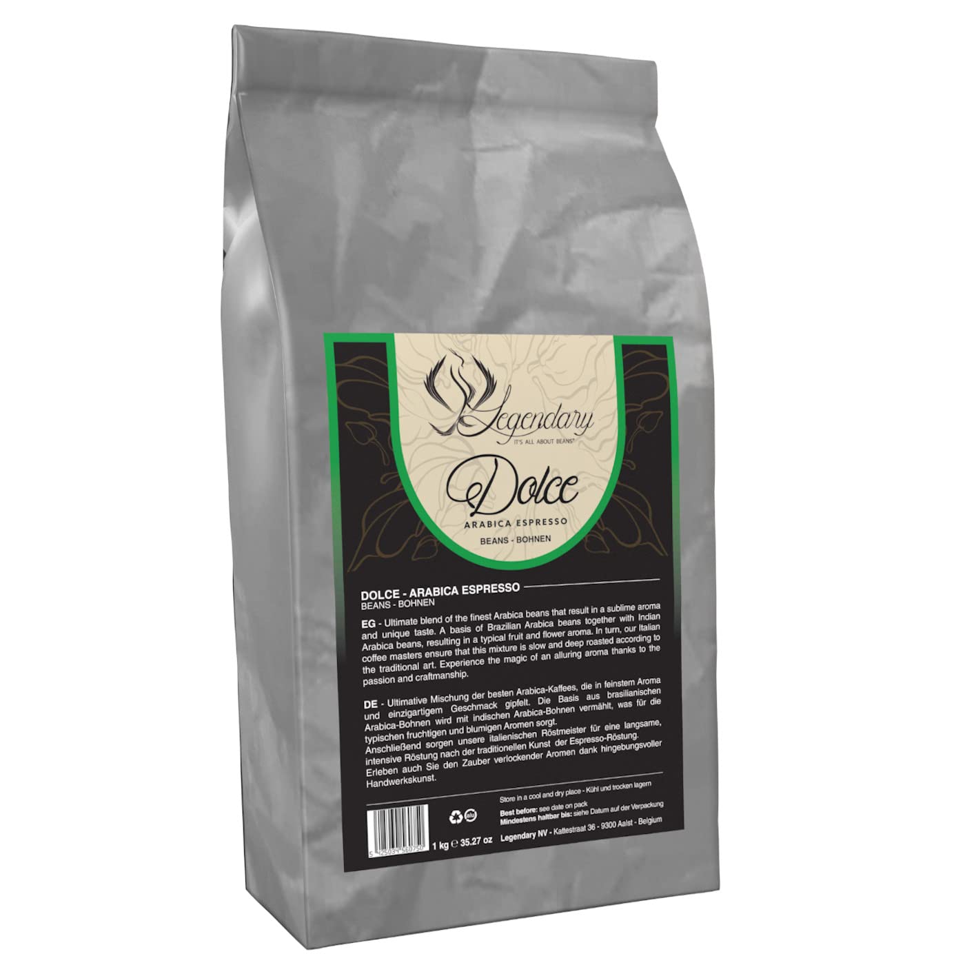 Legendary Carracci koffie DOLCE fijnste samenstelling van de beste 100 Arabica bonen 1 kg (DOLCE)