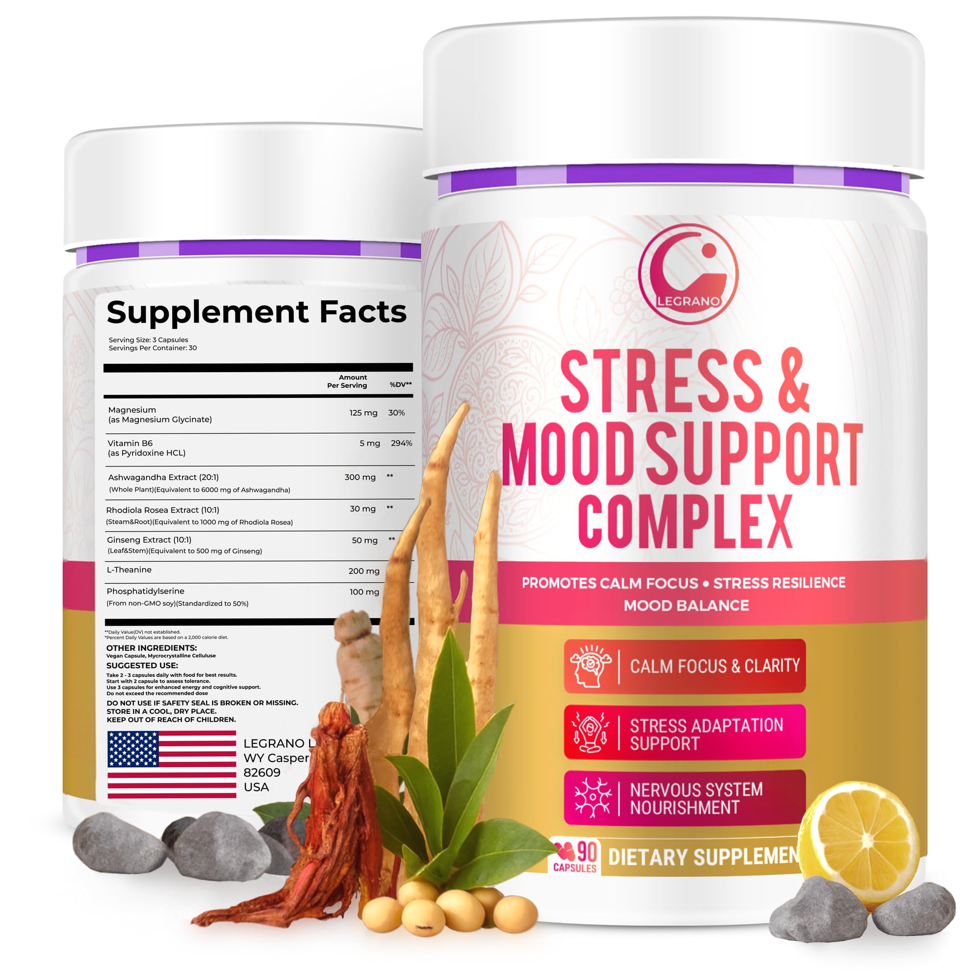 LEGRANO Cortisol Manager Supplements for Women & Men with Ashwagandha L-Theanine Magnesium Glycinate Rhodiola Ginseng Cortisol Reducer & Adrenal Support 90 Capsules Calm Focus Balance