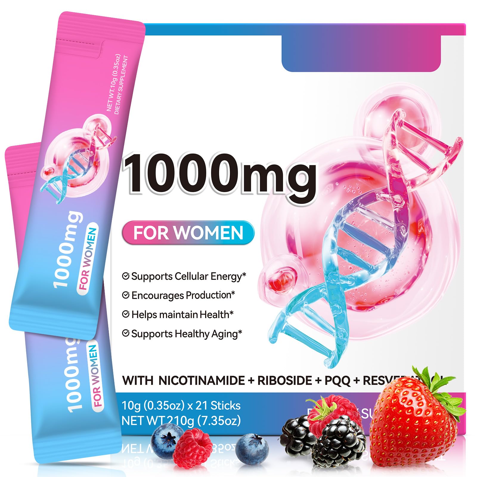 Convenient stick packaging for on-the-go enjoyment. One stick a day, easily activate cellular energy, embrace youthful vitality!. Natural formula: Purely natural formula, non-GMO, gluten-free, can be mixed with natural fruit and vegetable concentrates, refreshing taste. Rapid recovery: Accelerates muscle energy regeneration, reduces post-exercise fatigue, enhances endurance and recovery speed, suitable for fitness enthusiasts and daily fatigue relief. supplement for women. Vitality circulation: Supports energy production in cardiac muscle cells, improves cardiovascular function, and enhances endurance of the circulatory system, making the heart stronger. Enhanced brain power and mental agility: Improves cognitive speed and focus, boosting work and study efficiency and clarity of mind. supplements. Highly effective, cellular rejuvenation: Contains 150mg of resveratrol, quercetin (250mg), significantly boosting , promoting damage repair, and rejuvenating your appearance from the inside out. supplements for women.