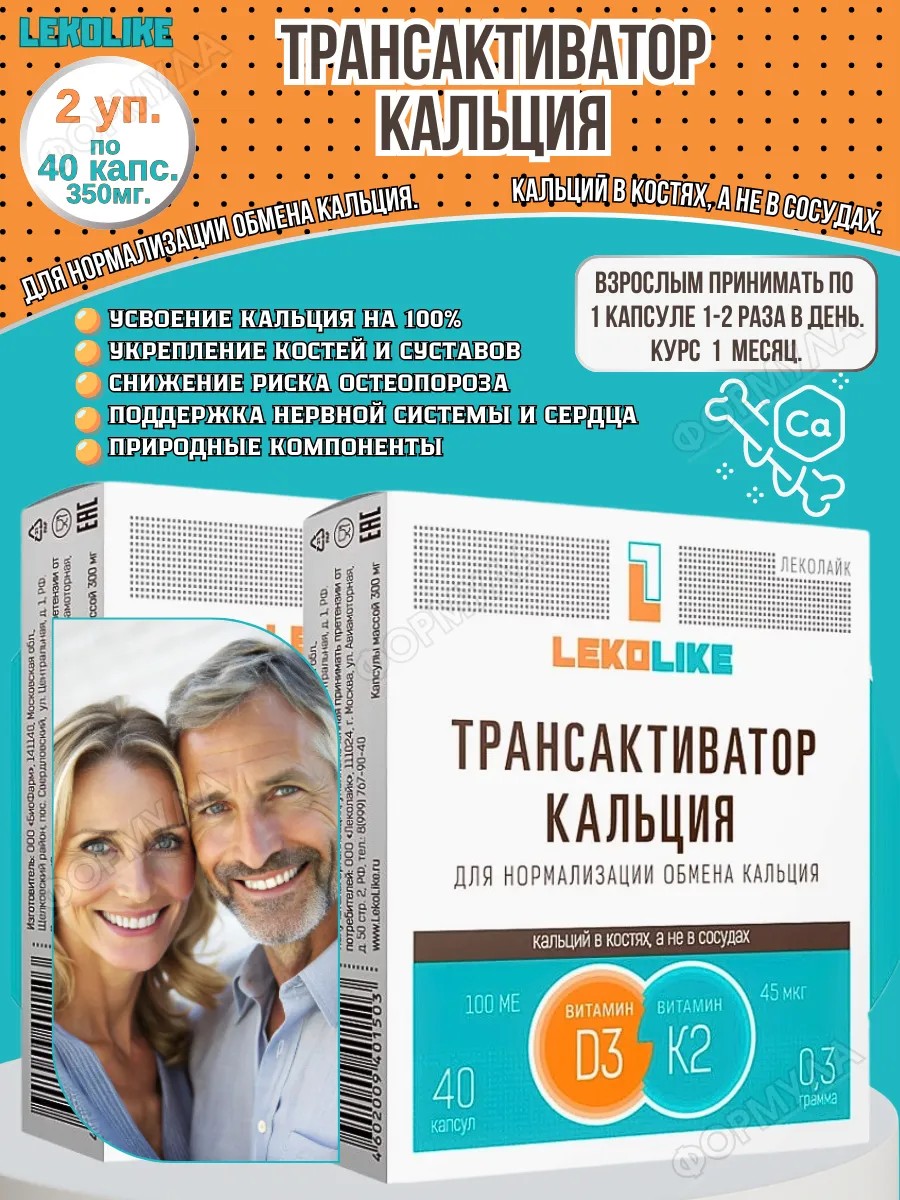 | Комплектация | Lekolike Трансактиватор Кальция Леколайк N40 Капс По 350мг; 2 уп |