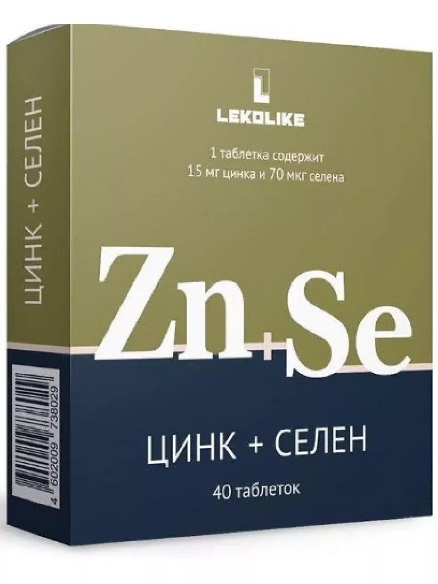LEKOLIKE ЦИНК+СЕЛЕН - Биологически активная добавка (БАД) к пище - создана для качественного восполнения дефицита цинка и селена в организме человека. В состав препарата входят: цитрат цинка - один из лучших с позиции биодоступности источников цинка и Селексен - единственный из известных источников селена, содержащих биодоступный и нетоксичный селен.
